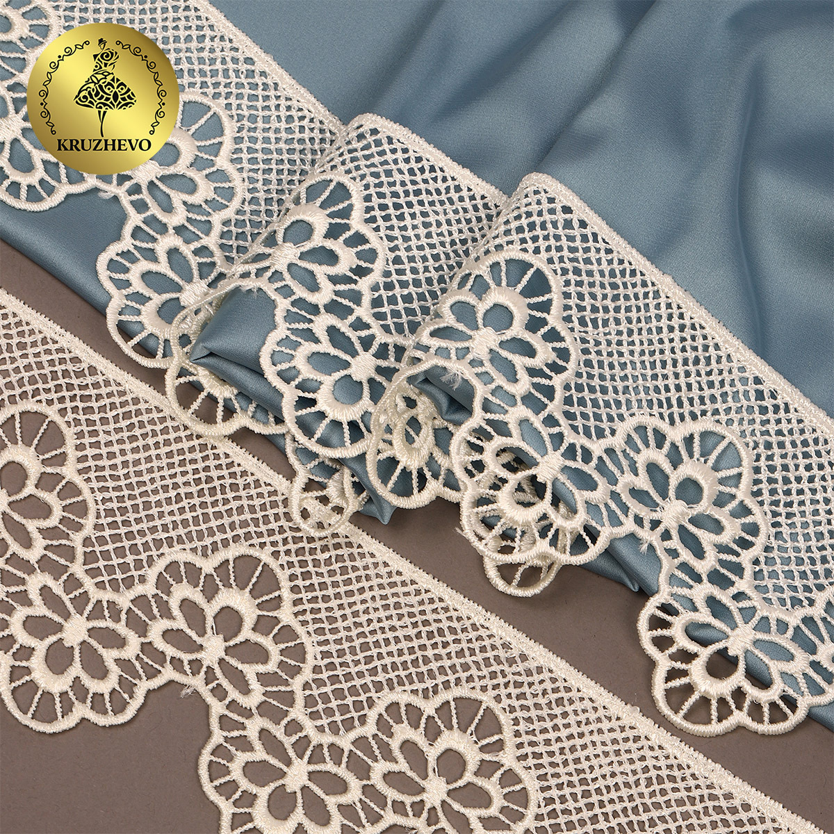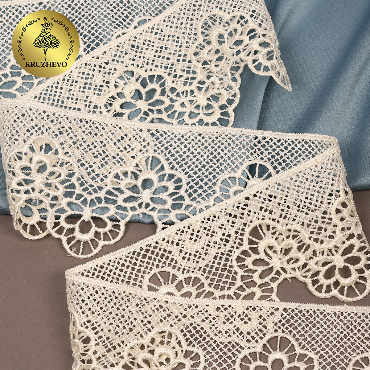 Легкое, ажурное гипюровое кружево. Имеет широкую область применения: начиная от одежды и свадебных нарядов заканчивая декором интерьера.