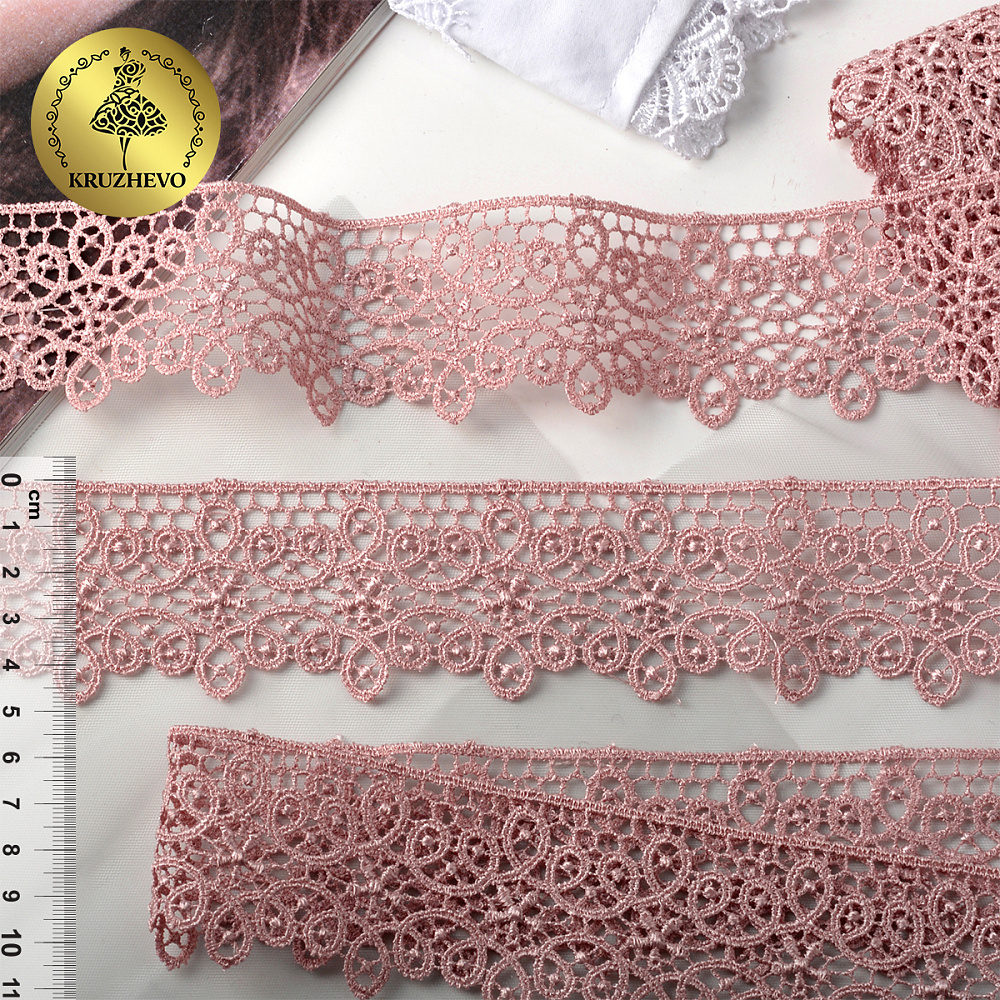 Кружево гипюр (плетёное) 45 мм, 1188 цв.09 розовая пудра, уп.9м., Kruzhevo