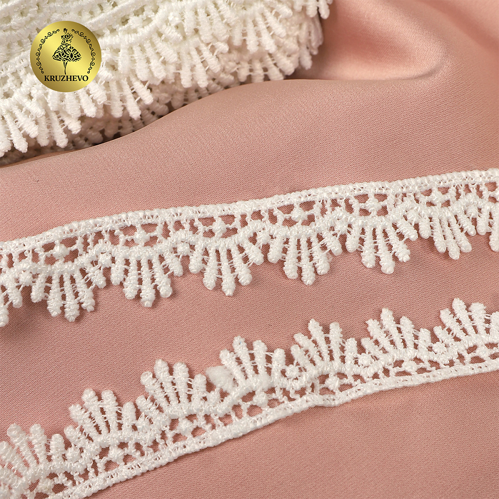 Легкое, ажурное кружево гипюр. Мягкое, но при этом очень прочное за счет полиэстеровых нитей. Имеет благородный блеск. Хорошо держит форму. Широкая область применения: начиная от одежды и свадебных нарядов, заканчивая декором интерьера.