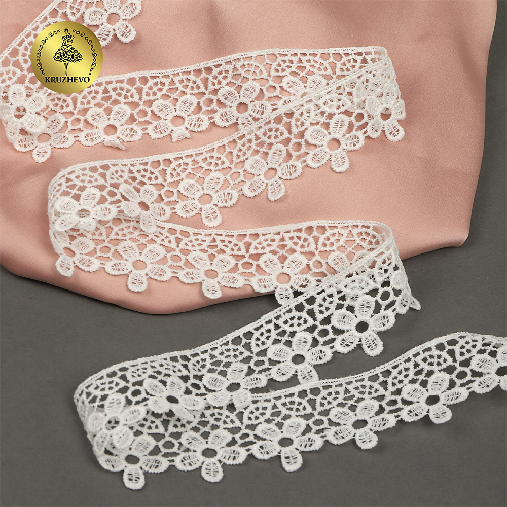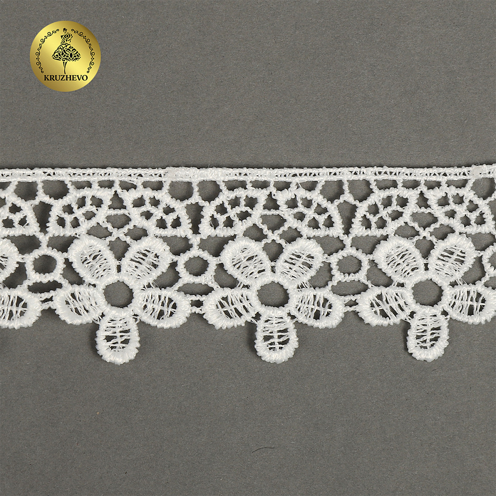 Кружево гипюр (плетёное) 32 мм, 0107 цв.01 белый уп.13,7м, Kruzhevo
