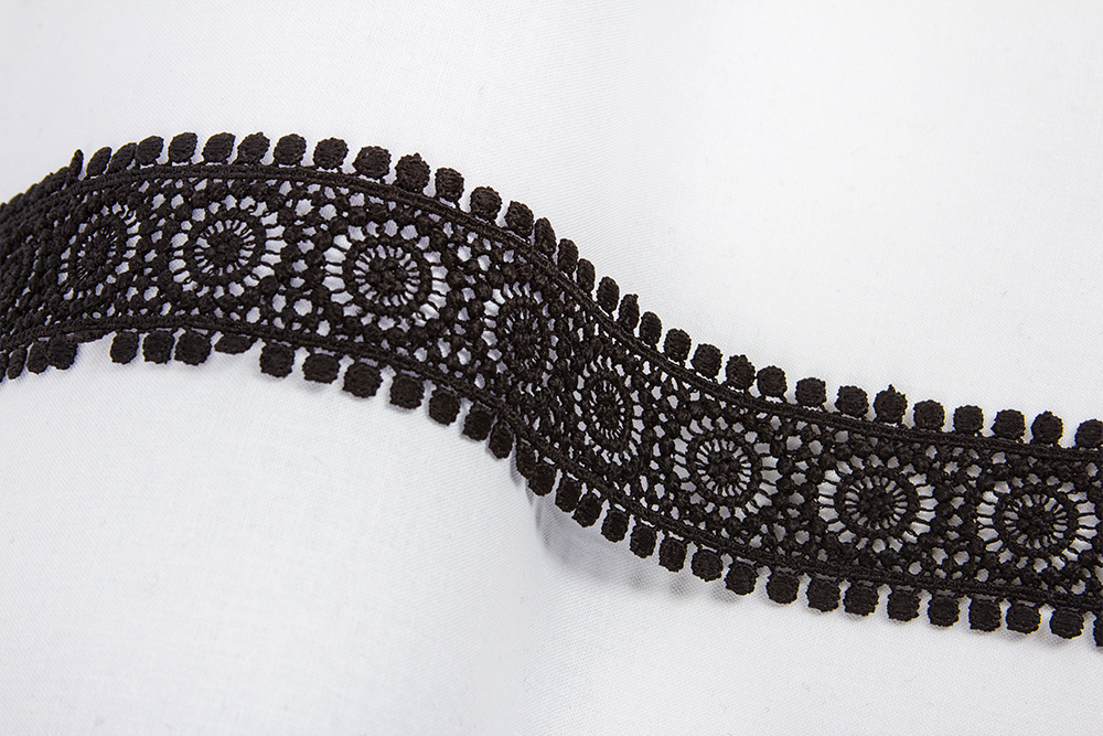 Кружево гипюр (плетёное) 40 мм / 10 м, черный, Gamma GGM-4003
