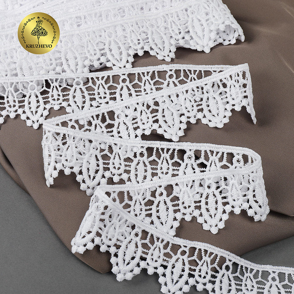 Кружево гипюр (плетёное) 40 мм, матовая нить, цв.01 белый уп.13,71м, Kruzhevo