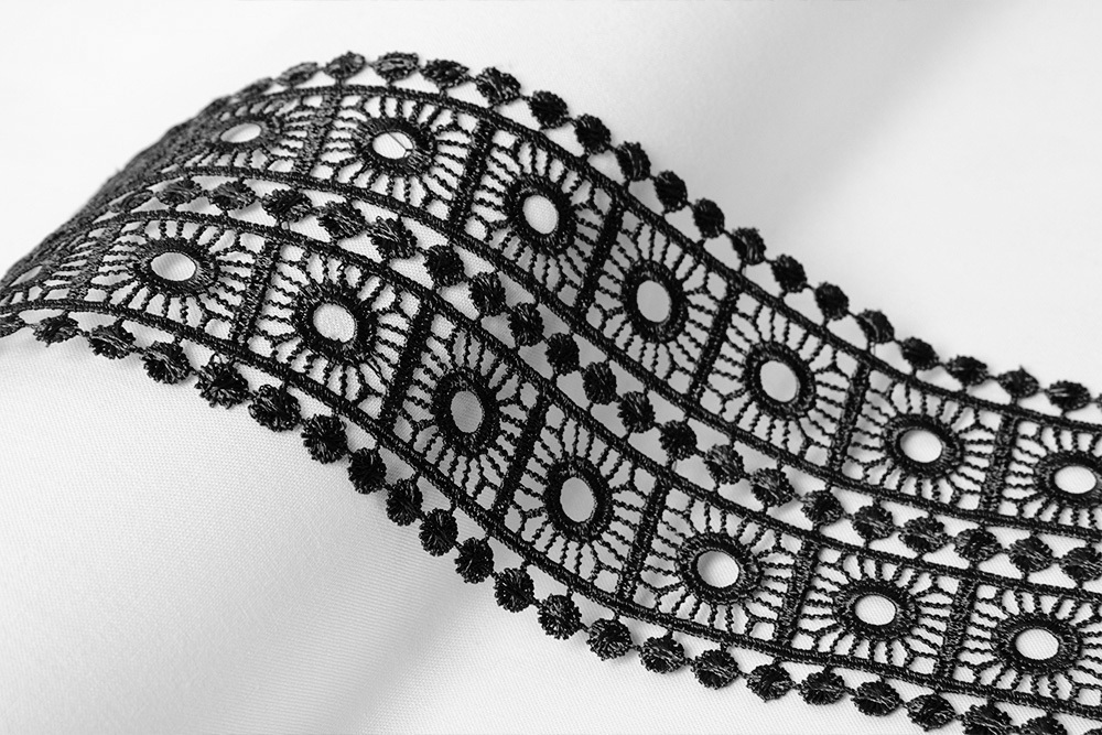 Кружево гипюр (плетёное) 78 мм / 10 м, черный, Gamma GGM-7801