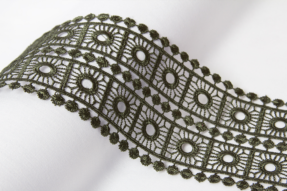 Кружево гипюр (плетёное) 78 мм / 10 м, хаки, Gamma GGM-7801
