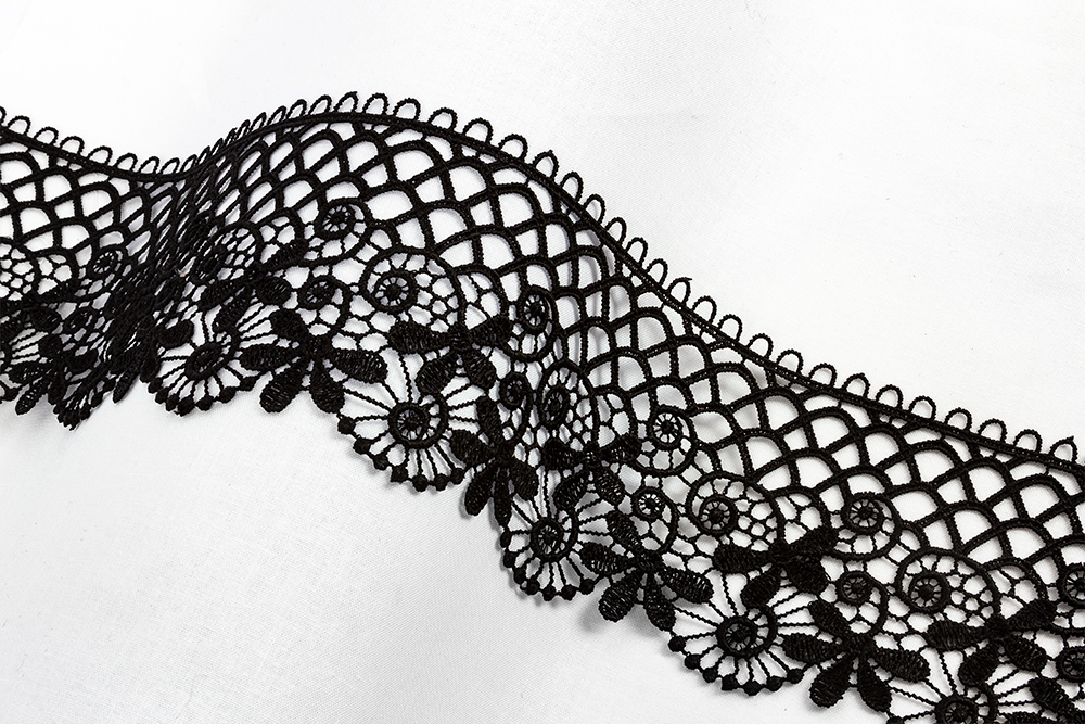 Кружево гипюр (плетёное) 88 мм / 10 м, черный, Gamma GGM-8801