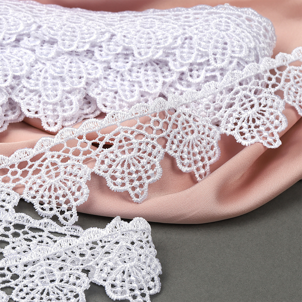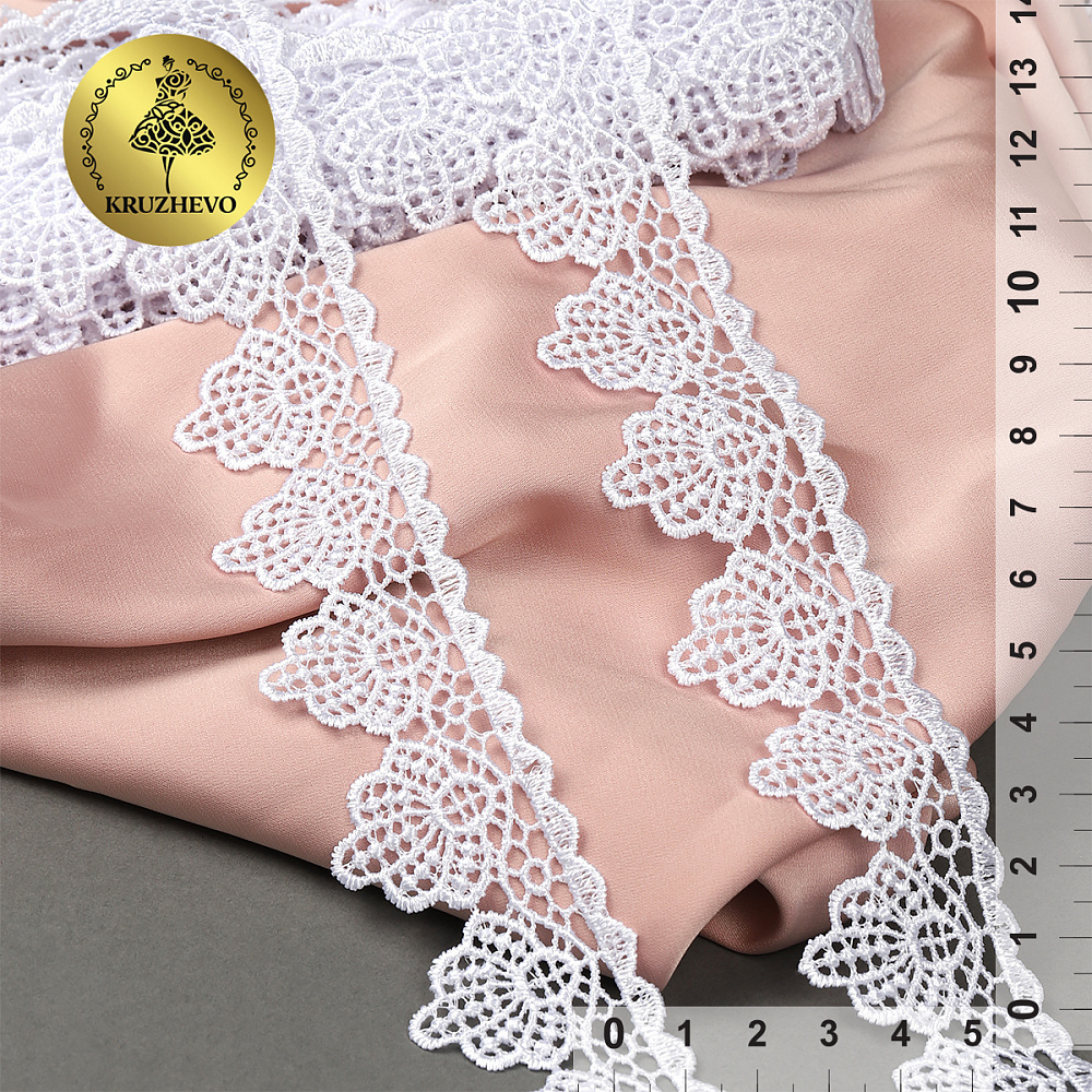 Легкое, ажурное гипюровое кружево от бренда "Premium" с дизайном в виде ромашек, вечный признак элегантности. Простой и лаконичный дизайн, мягкость и изящество позволяют использовать его для пошива и отделки различных видов одежды, свадебных нарядов, отделки домашнего текстиля. Гипюровое кружево придаст любому образу совершенно неповторимый шарм.