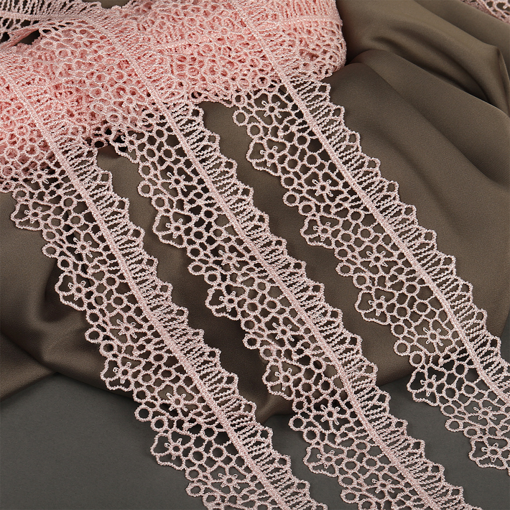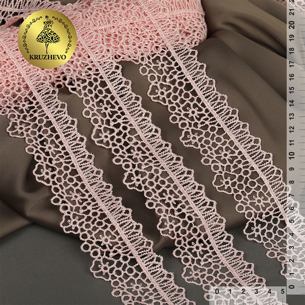 Кружево гипюр (плетёное) 45 мм, диз.2501 цв.R1815 св.розовый уп.13.71м, Kruzhevo