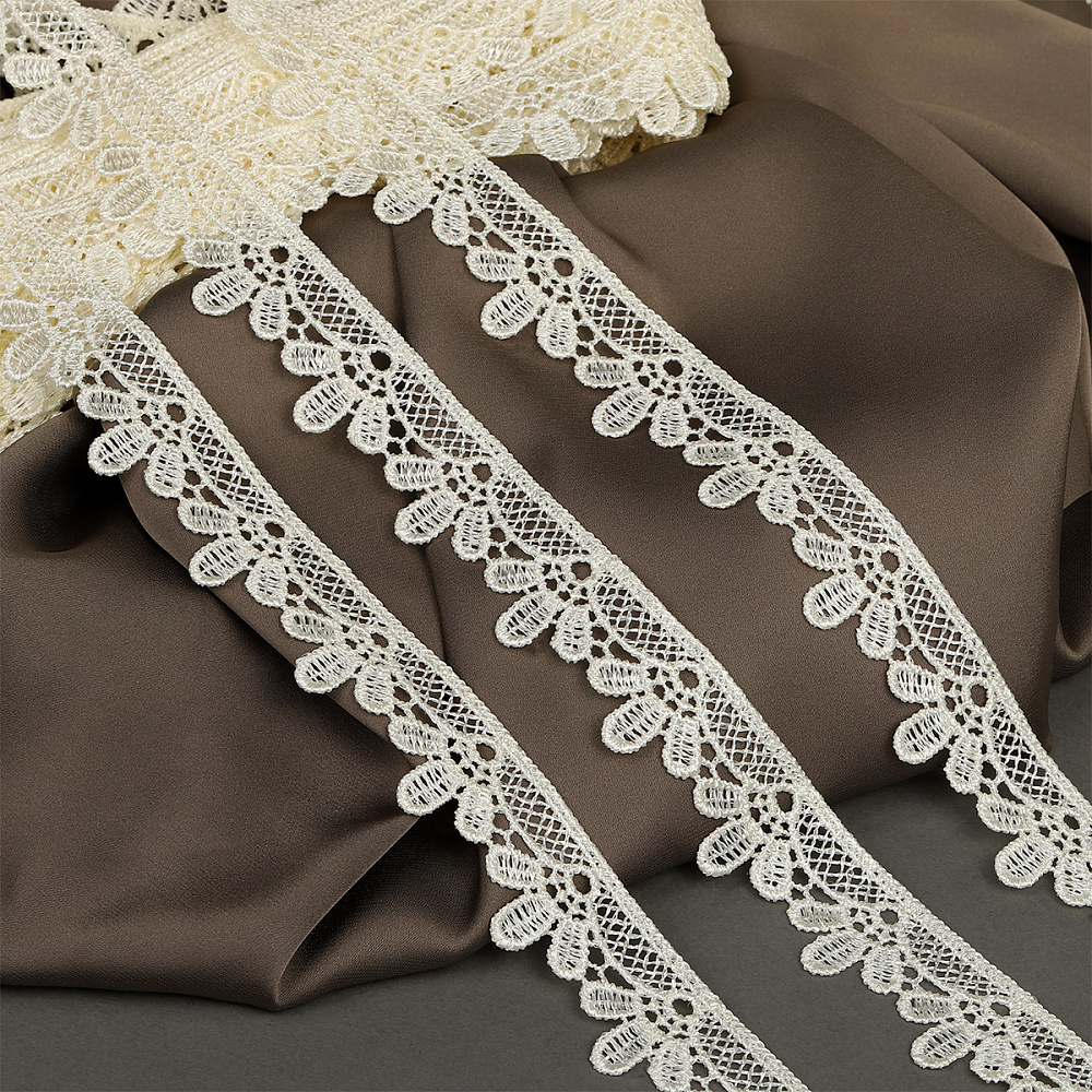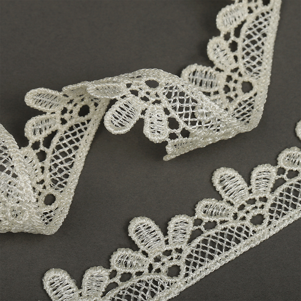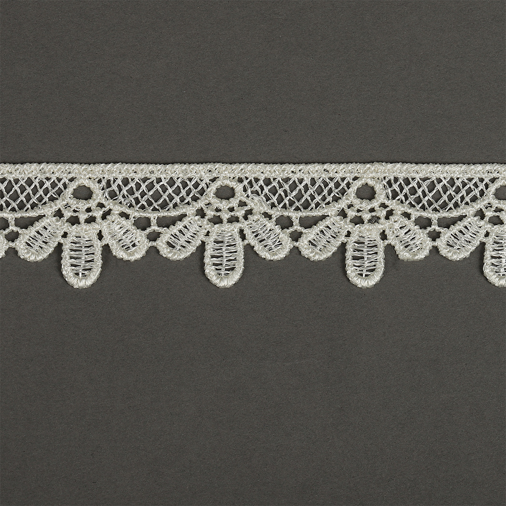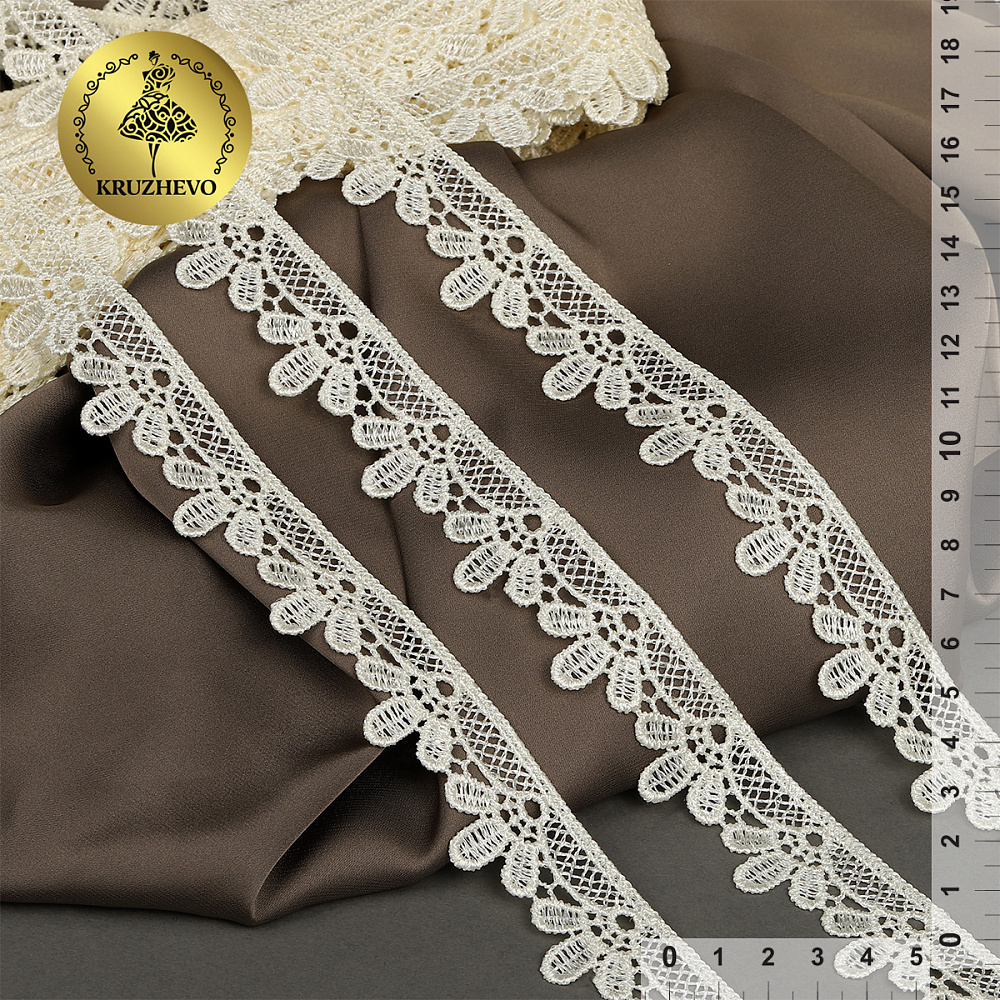 Кружево гипюр (плетёное) 25 мм, диз.2504 цв.F102 молочный уп.13.71м, Kruzhevo