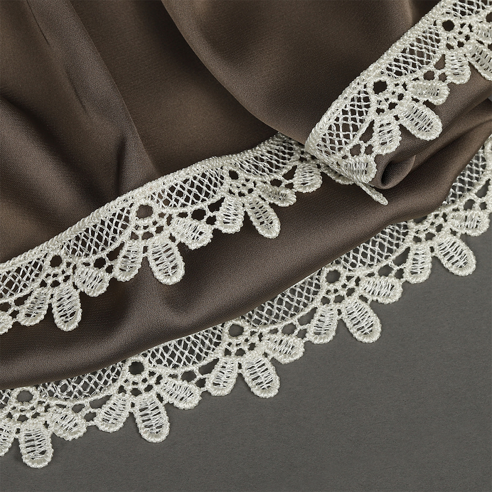 Легкое, ажурное гипюровое кружево. Имеет широкую область применения: начиная от одежды и свадебных нарядов заканчивая декором интерьера.