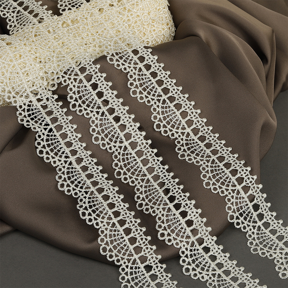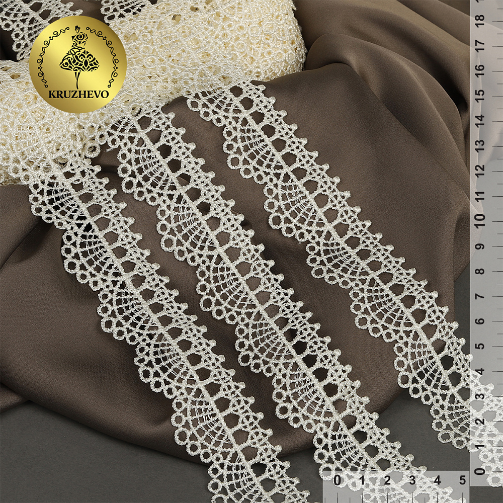 Кружево гипюр (плетёное) 35 мм, диз.2505 цв.F102 молочный уп.13.71м, Kruzhevo