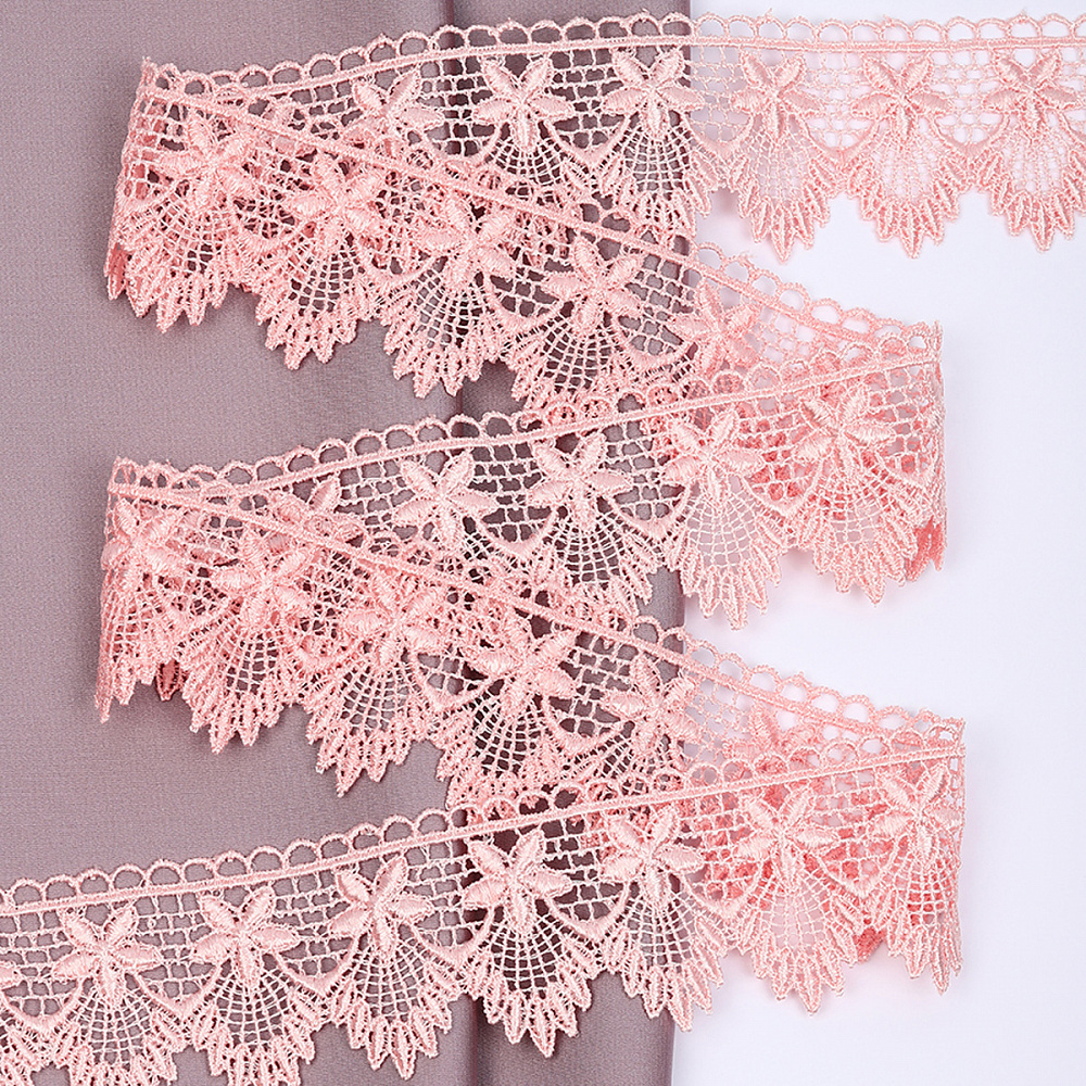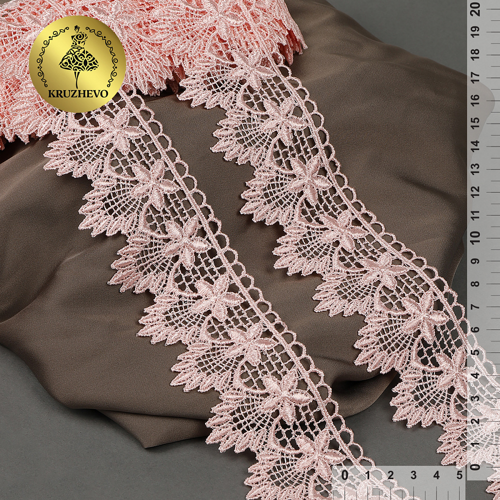 Кружево гипюр (плетёное) 50 мм, диз.8G8420B цв.07 розовый, уп.9м, Kruzhevo
