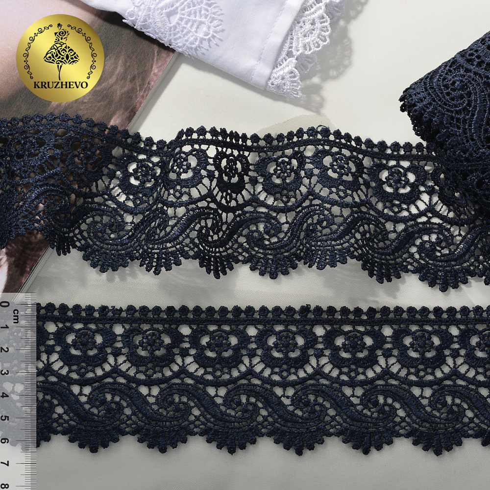 Кружево гипюр (плетёное) 65 мм, диз.TR 8GB014 цв.12 т.синий уп.9м, Kruzhevo