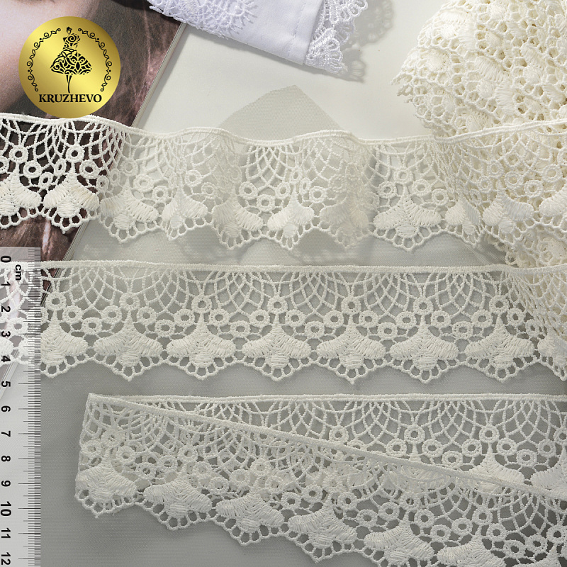 Кружево гипюр (плетёное) 45 мм, диз. 167, цв.02 молочный, уп. 9 м, Kruzhevo