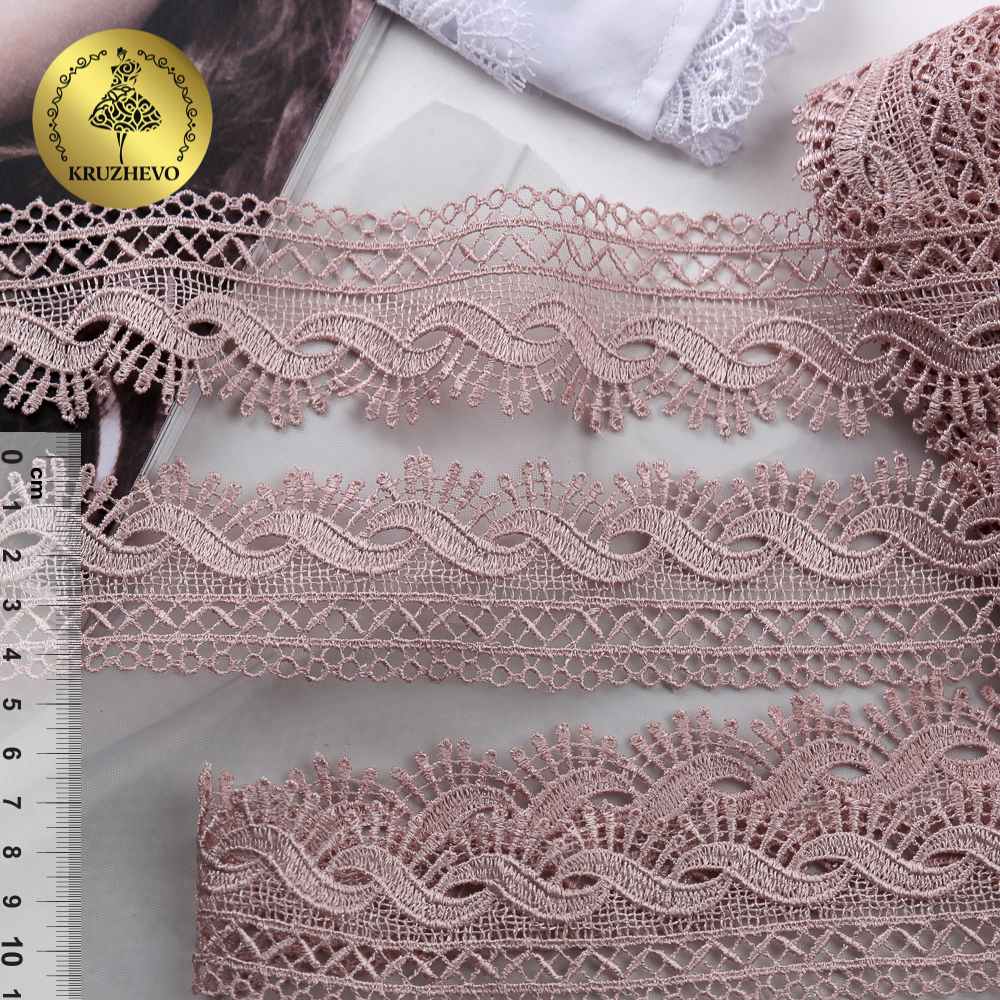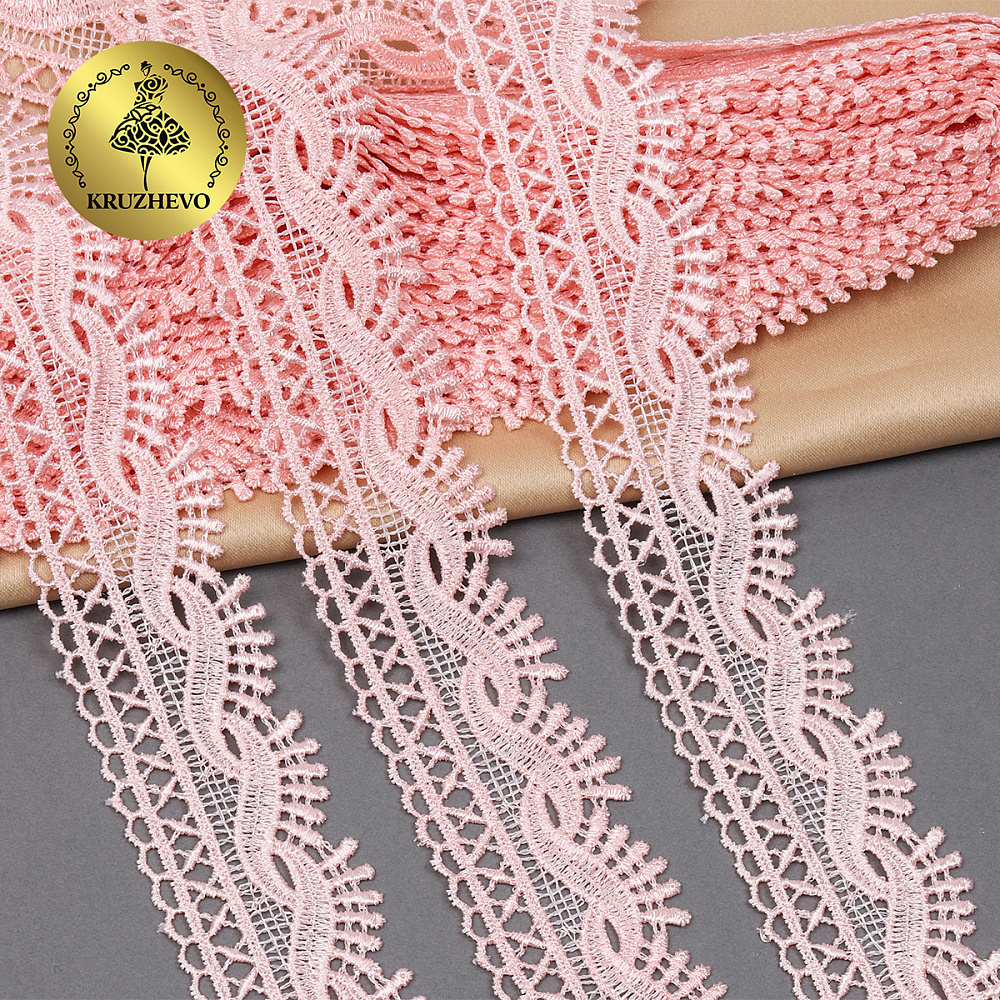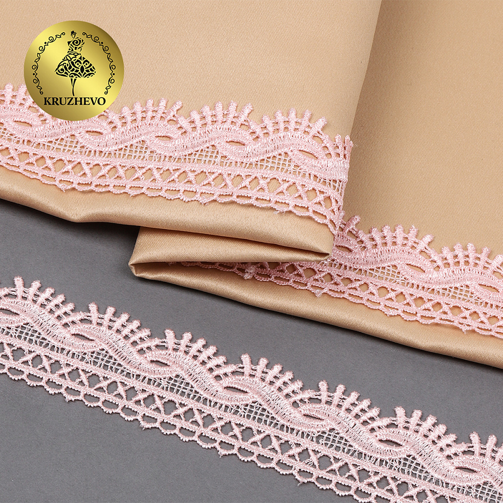 Кружево гипюр (плетёное) 40 мм, цв.6 бл.розовый уп. 9 м, Kruzhevo