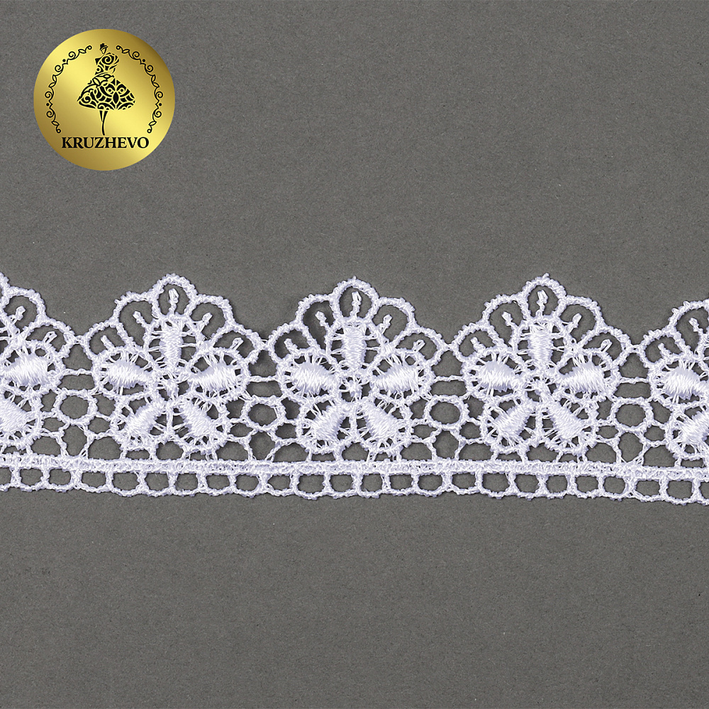 Кружево гипюр (плетёное) 30 мм, диз. 121, цв.1 белый уп. 9 м, Kruzhevo