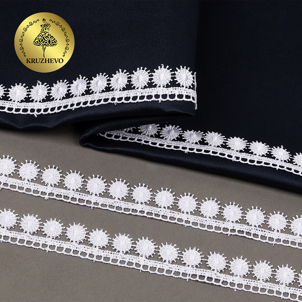 Ажурное, фактурное кружево гипюр. Рисунок плотный, детально вывязанный. Отлично держит форму, при этом является достаточно гибким и удобным в работе. Подойдет для отделки и украшения текстильных изделий, одежды и аксессуаров.