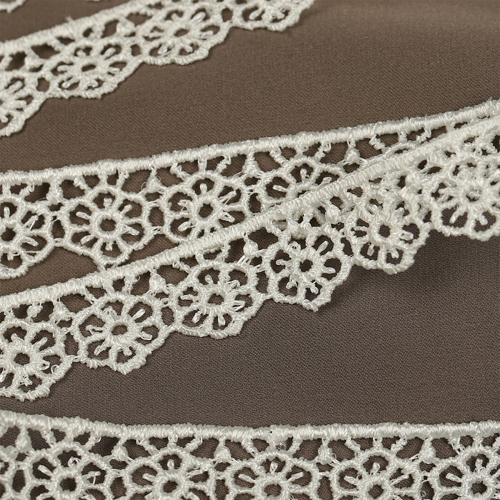 Легкое, ажурное гипюровое кружево. Имеет широкую область применения: начиная от одежды и свадебных нарядов заканчивая декором интерьера.