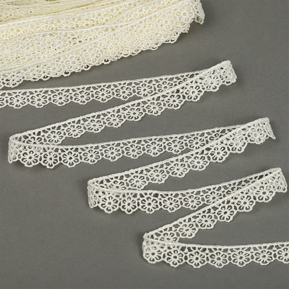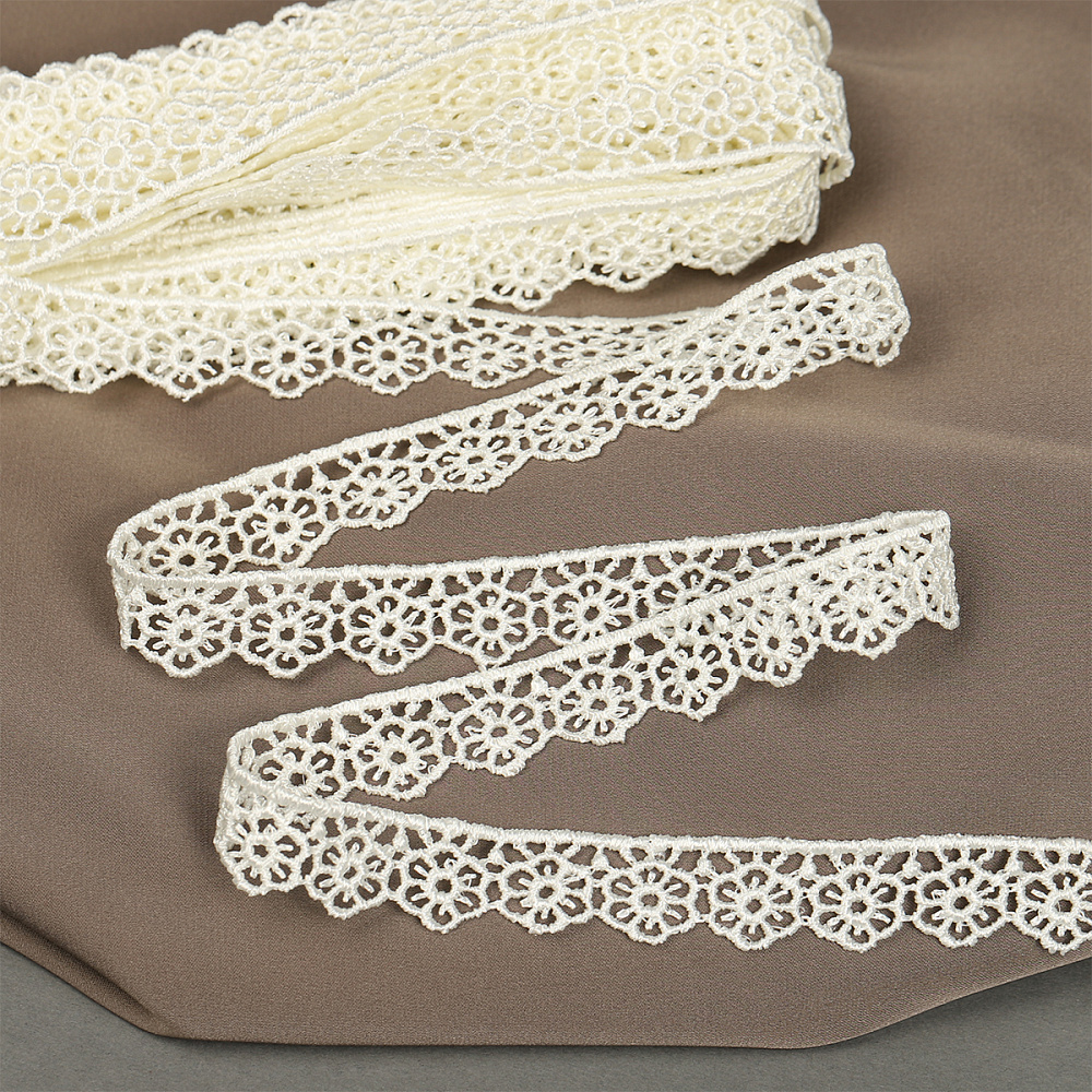 Кружево гипюр (плетёное) 15 мм цв.02 молочный, 9м, Kruzhevo