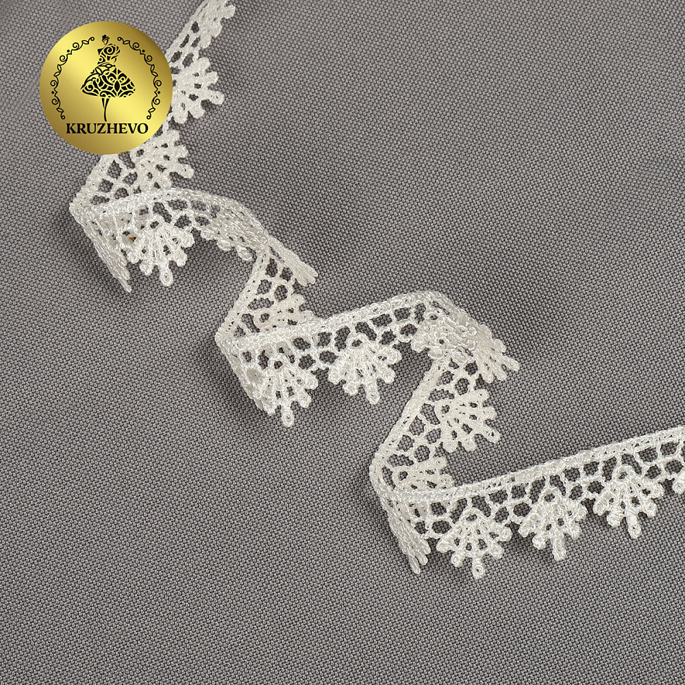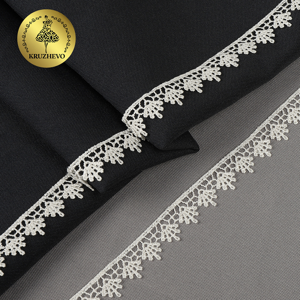 Ажурное, фактурное кружево гипюр от бренда Kruzhevo. Рисунок плотный, детально вывязанный. Отлично держит форму, при этом является достаточно гибким и удобным в работе. Подойдёт для отделки и украшения текстильных изделий, одежды и аксессуаров.