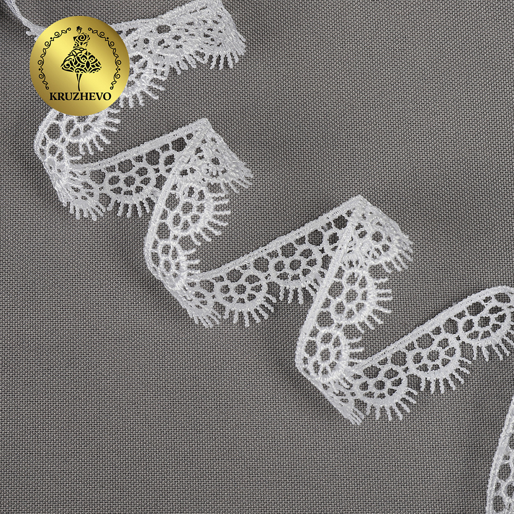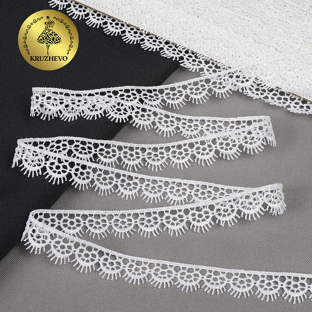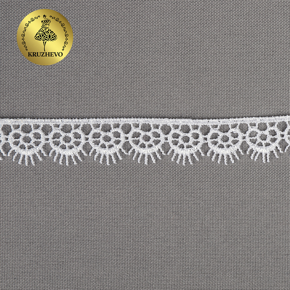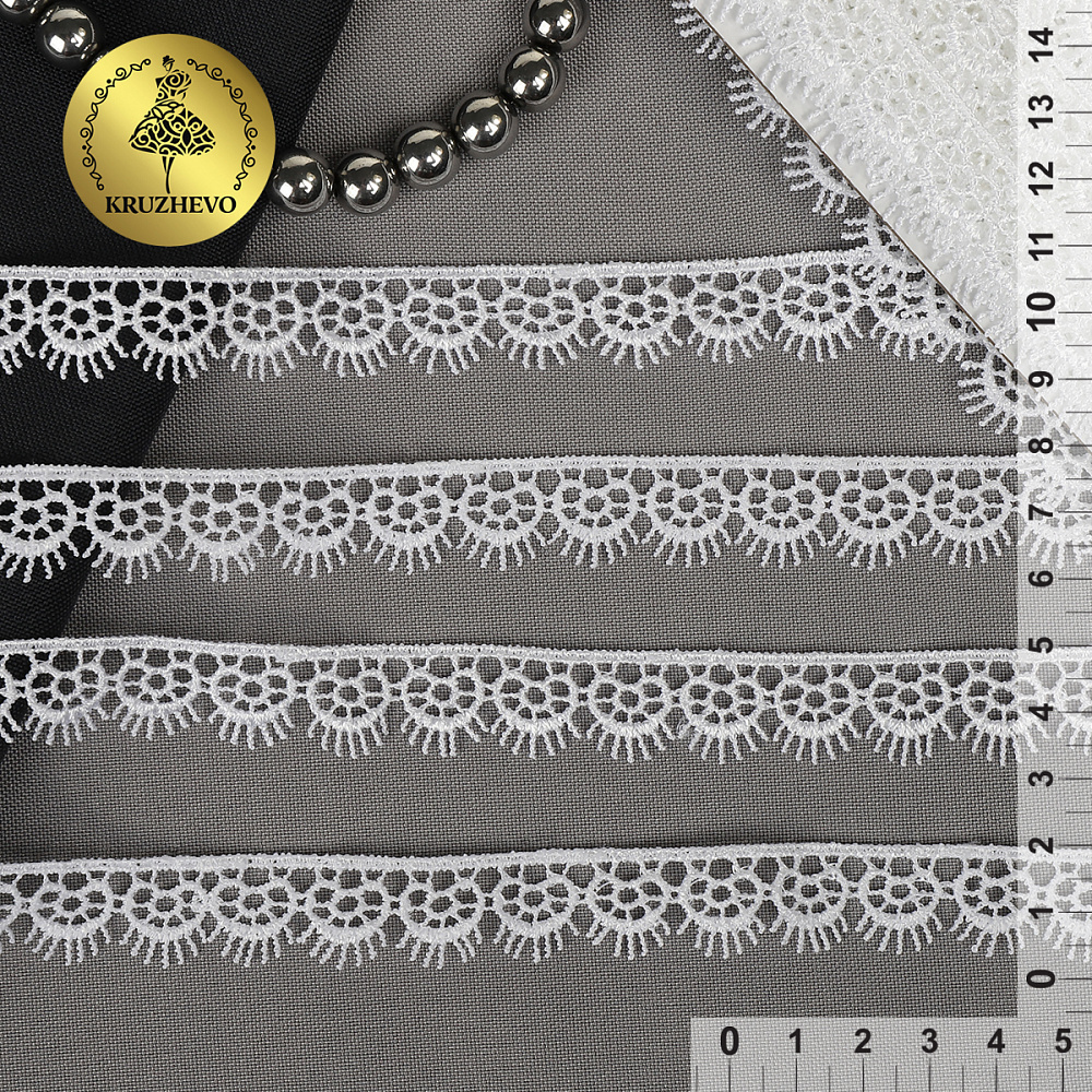 Ажурное, фактурное кружево гипюр от бренда Kruzhevo. Рисунок плотный, детально вывязанный. Отлично держит форму, при этом является достаточно гибким и удобным в работе. Подойдёт для отделки и украшения текстильных изделий, одежды и аксессуаров.
