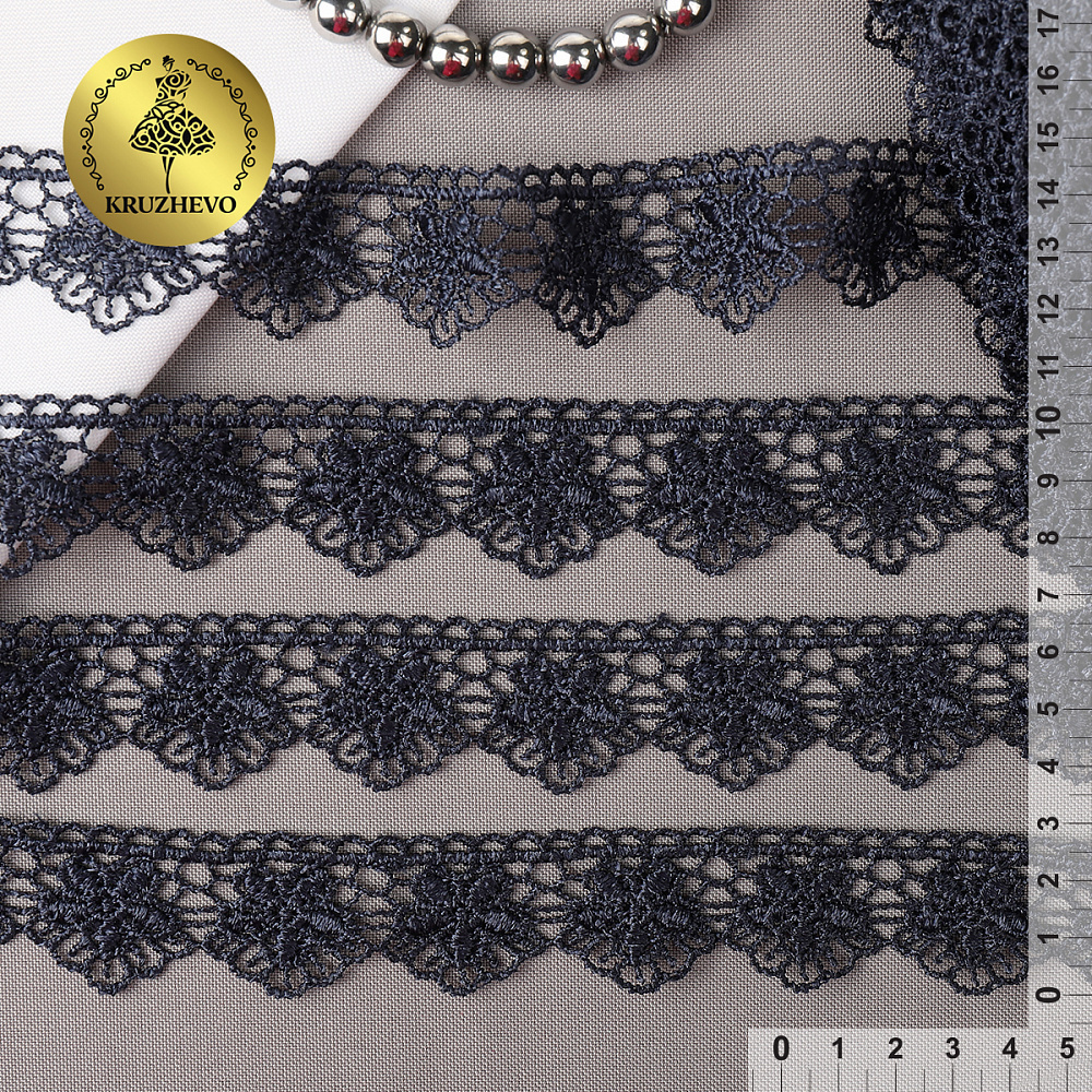 Кружево гипюр (плетёное) 30 мм / 13.71 метров, TBY.2812, цв.B4815 темно-синий