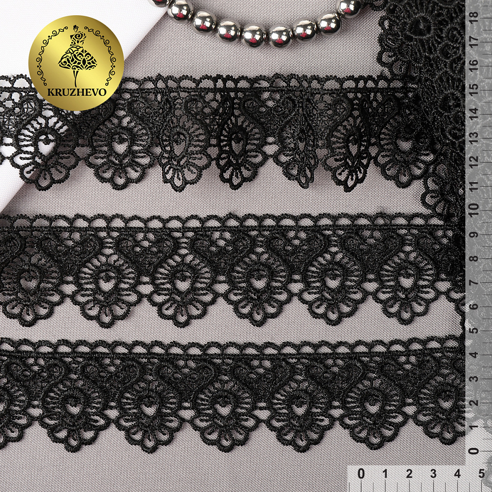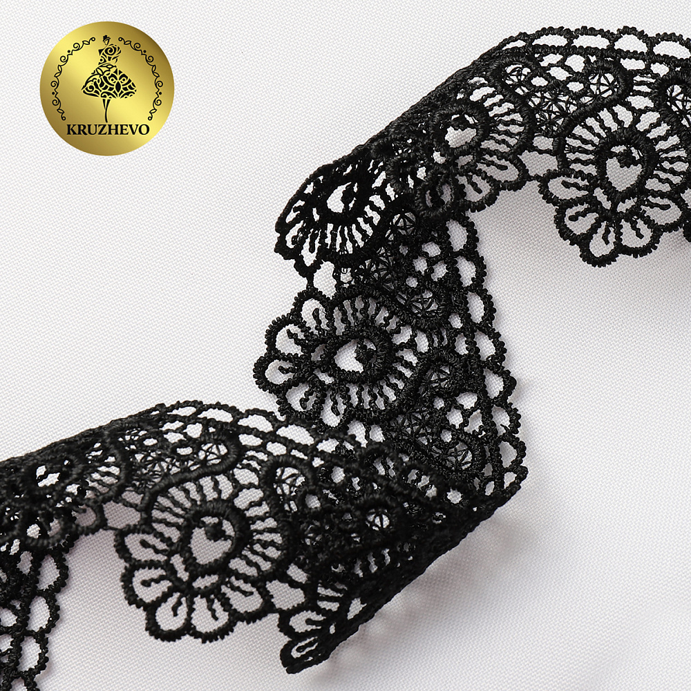 Кружево гипюр (плетёное) 45 мм / 13.71 метров, TBY.808, цв.черный