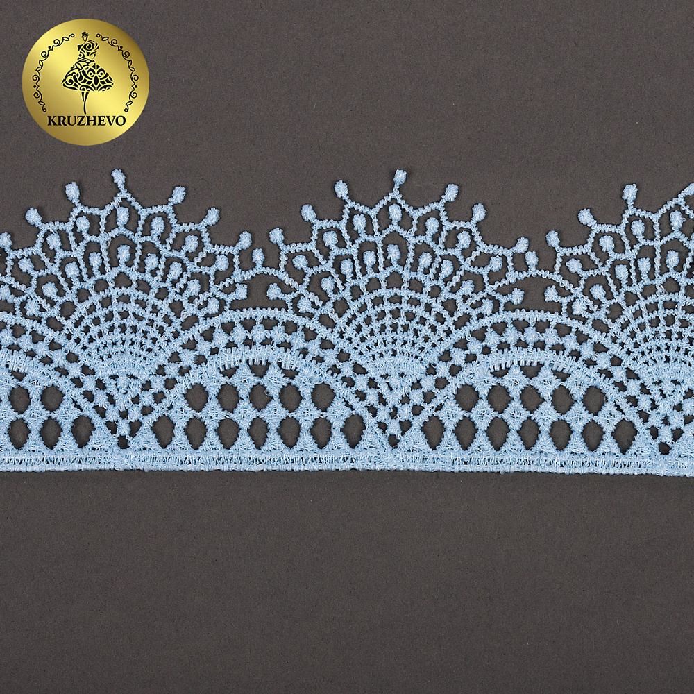 Красивое, ажурное гипюровое кружево от бренда Kruzhevo. Мягкое, но при этом очень прочное за счет полиэстеровых нитей. Хорошо держит форму. Имеет широкую область применения: начиная от одежды, школьной формы и свадебных нарядов, заканчивая декором интерьера.