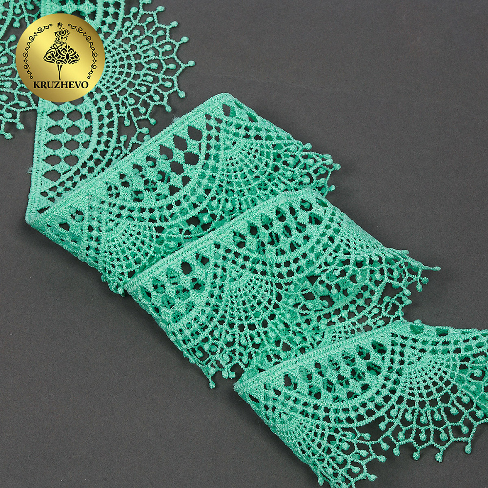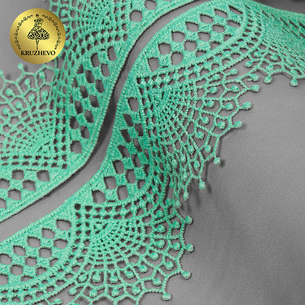 Красивое, ажурное гипюровое кружево от бренда Kruzhevo. Мягкое, но при этом очень прочное за счет полиэстеровых нитей. Хорошо держит форму. Имеет широкую область применения: начиная от одежды, школьной формы и свадебных нарядов, заканчивая декором интерьера.