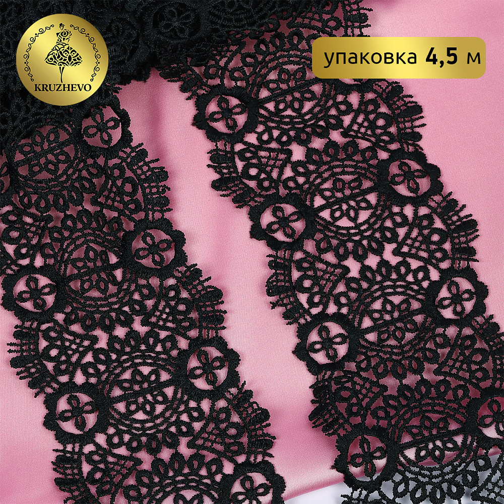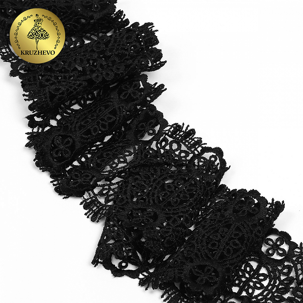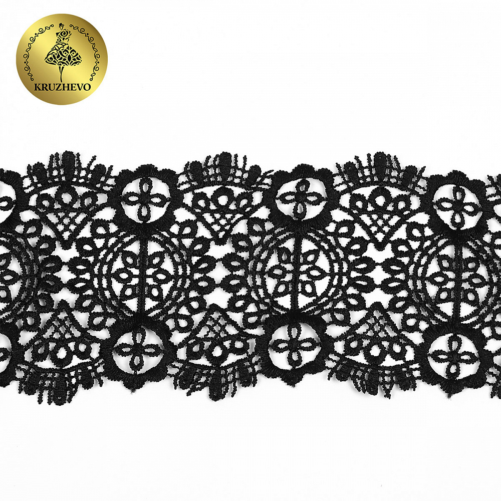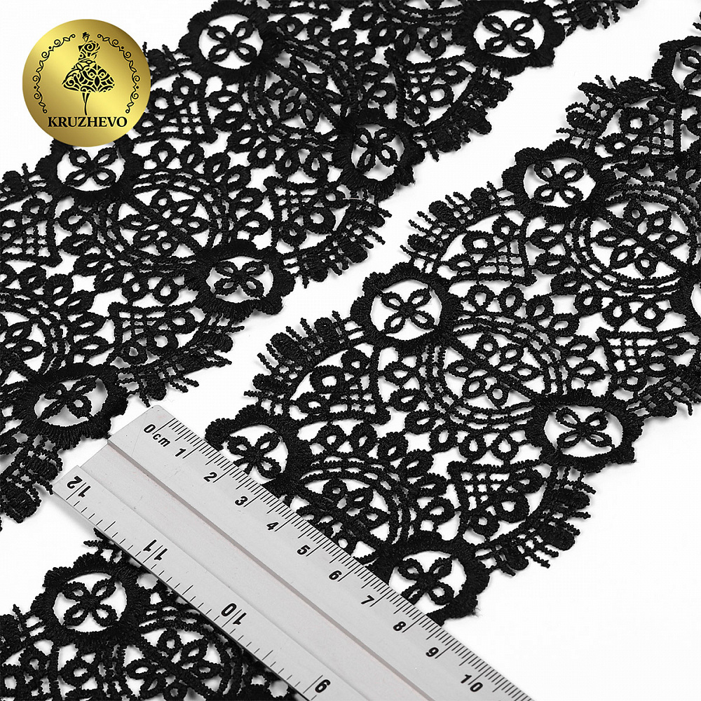 Кружево гипюр (плетёное) 85 мм / 4.5 метра, TBY.SUN.02, цв.черный