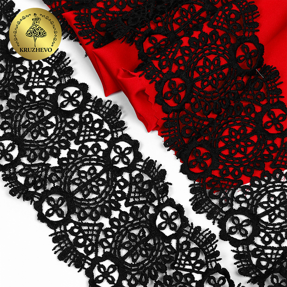 Легкое, ажурное кружево гипюр от бренда Kruzhevo. Мягкое, но при этом очень прочное за счет полиэстеровых нитей. Имеет благородный блеск. Хорошо держит форму. Широкая область применения: начиная от одежды и свадебных нарядов, заканчивая декором интерьера.