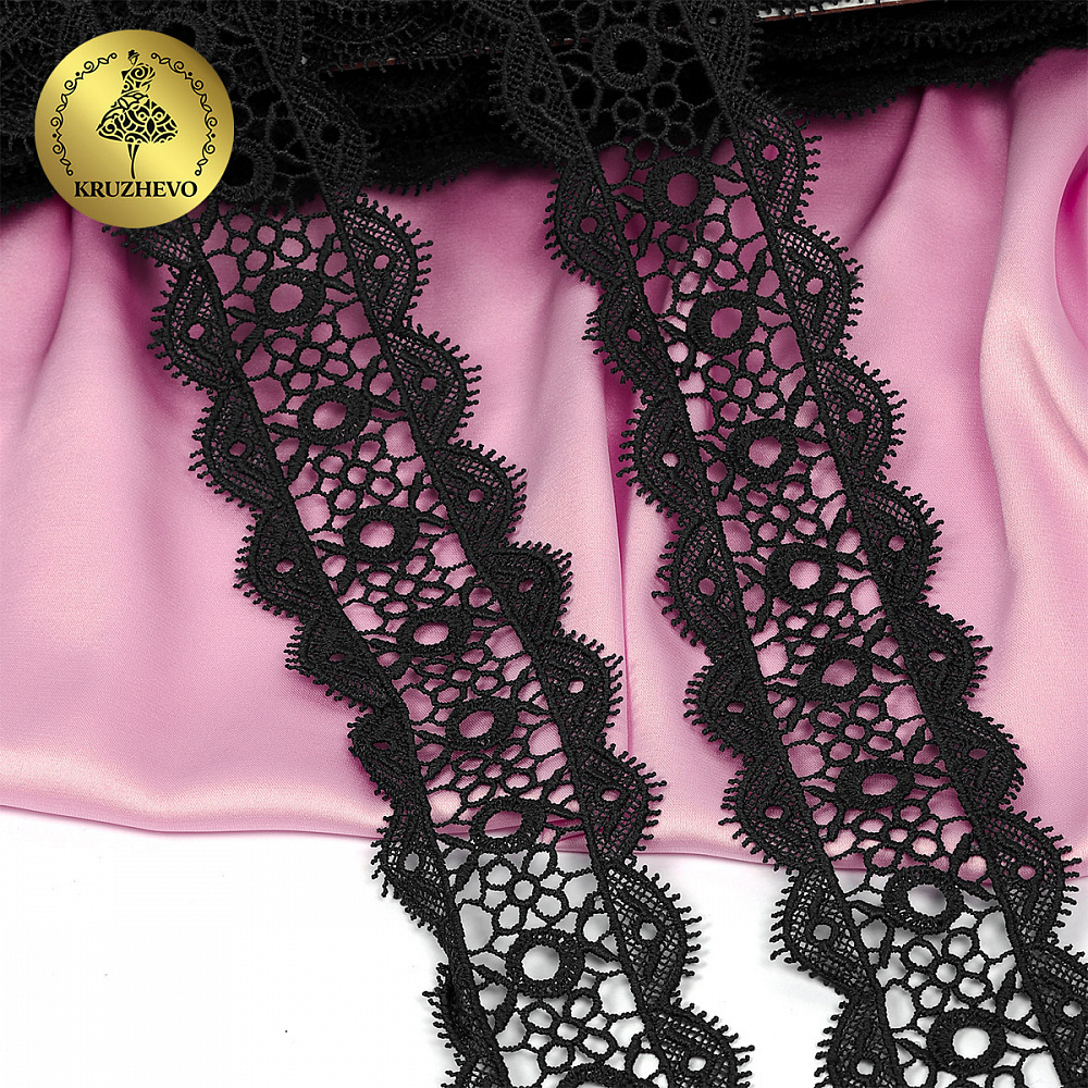 Красивое, ажурное гипюровое кружево от бренда Kruzhevo. Мягкое, но при этом очень прочное за счет полиэстеровых нитей. Хорошо держит форму. Имеет широкую область применения: начиная от одежды, школьной формы и свадебных нарядов, заканчивая декором интерьера.