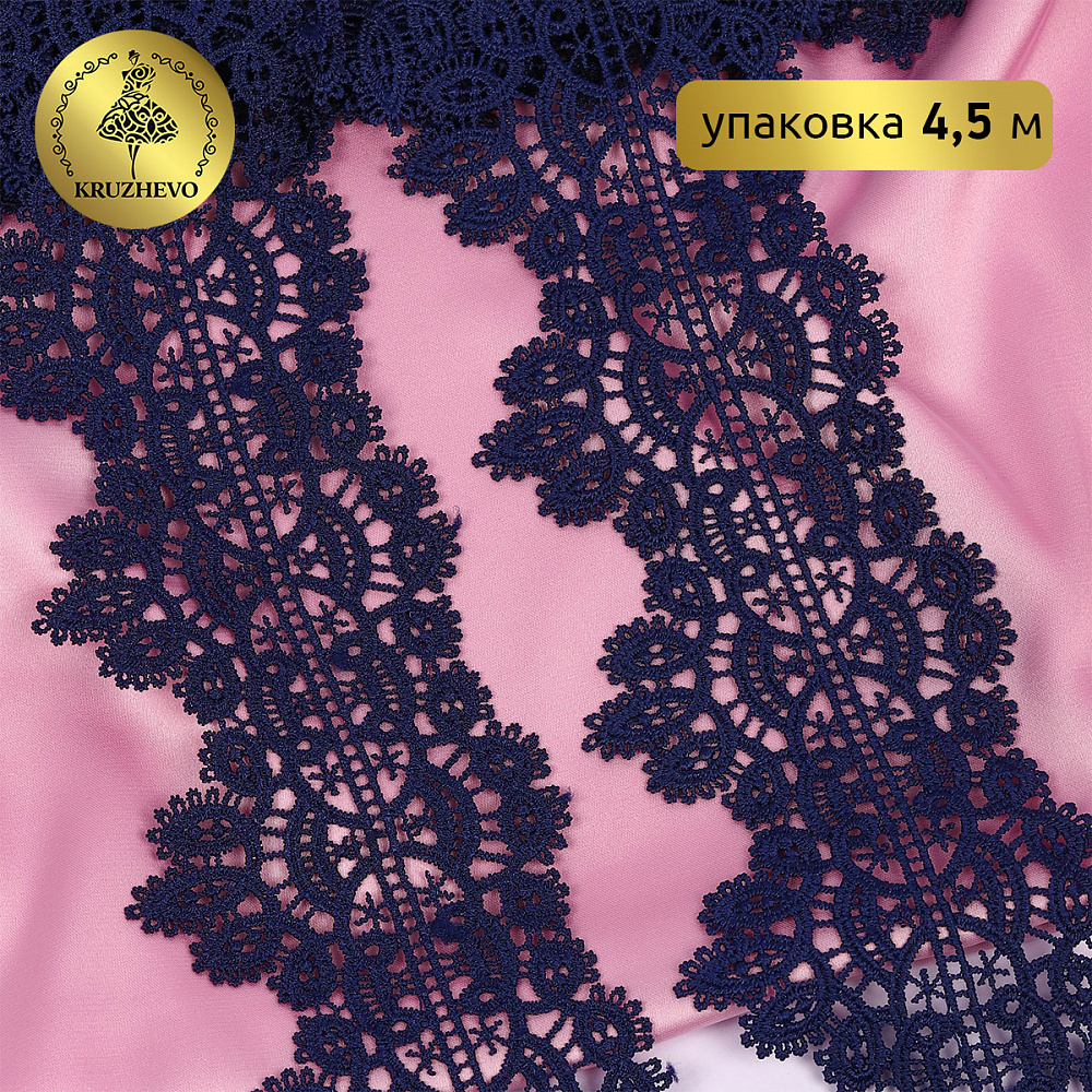 Кружево гипюр (плетёное) 70 мм / 4.5 метра, TBY.SUN.11, цв.F330 темно-синий