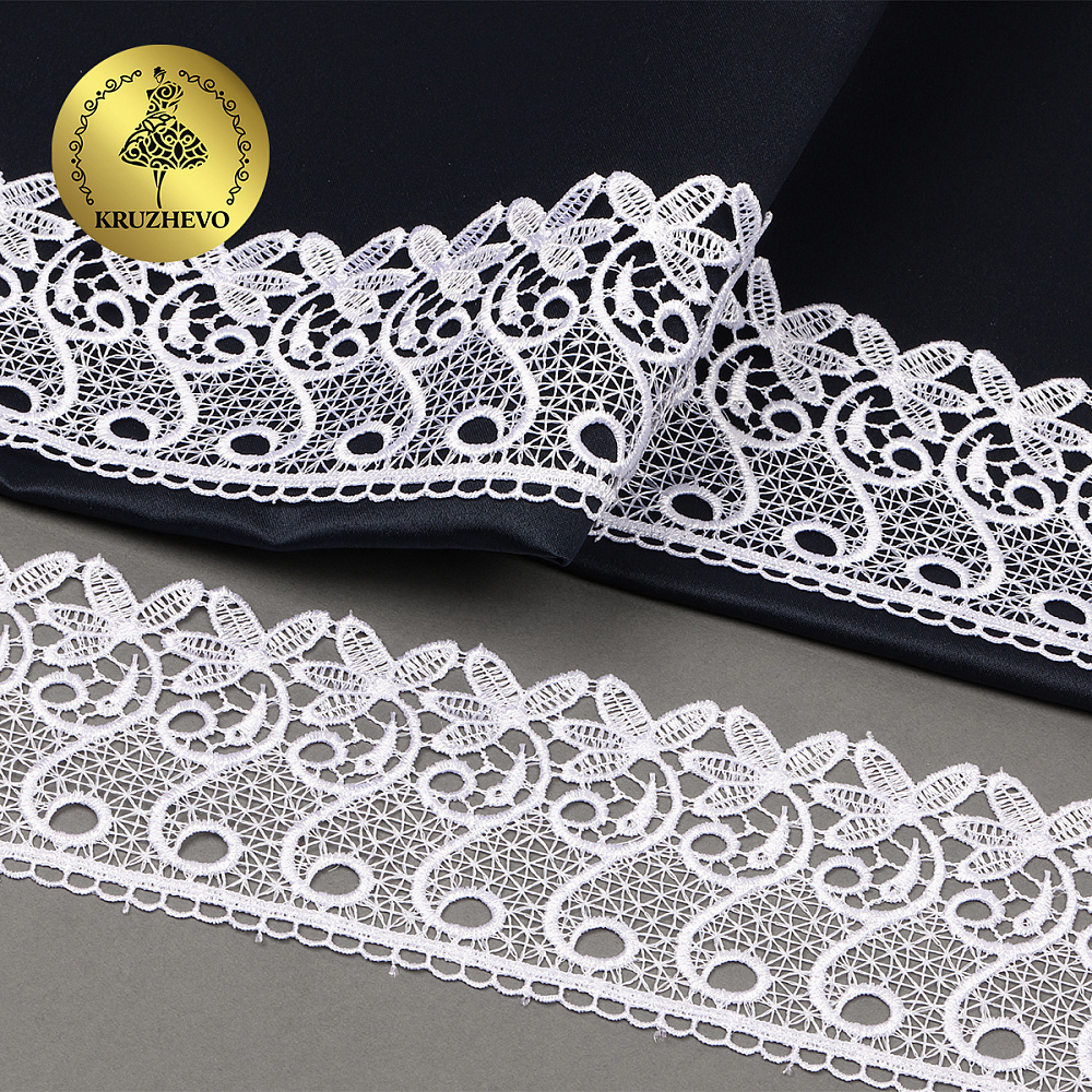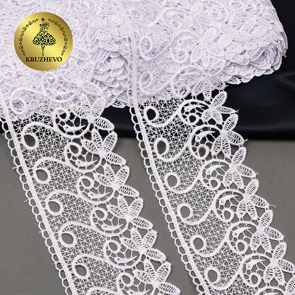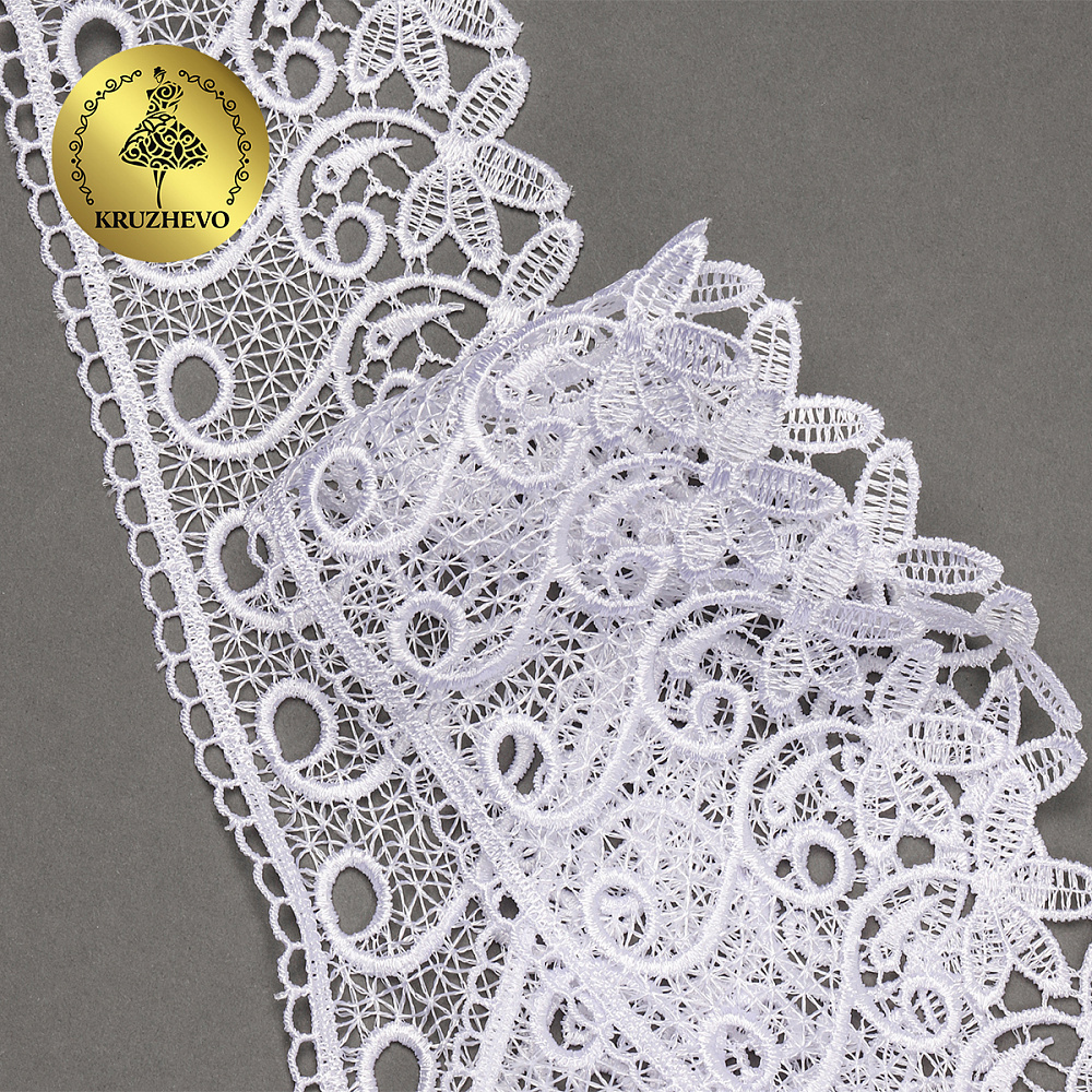 Легкое, ажурное гипюровое кружево. Имеет широкую область применения: начиная от одежды и свадебных нарядов заканчивая декором интерьера.
