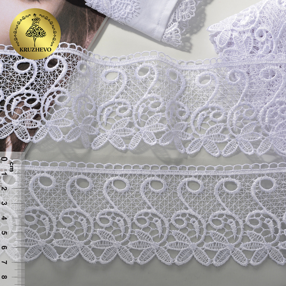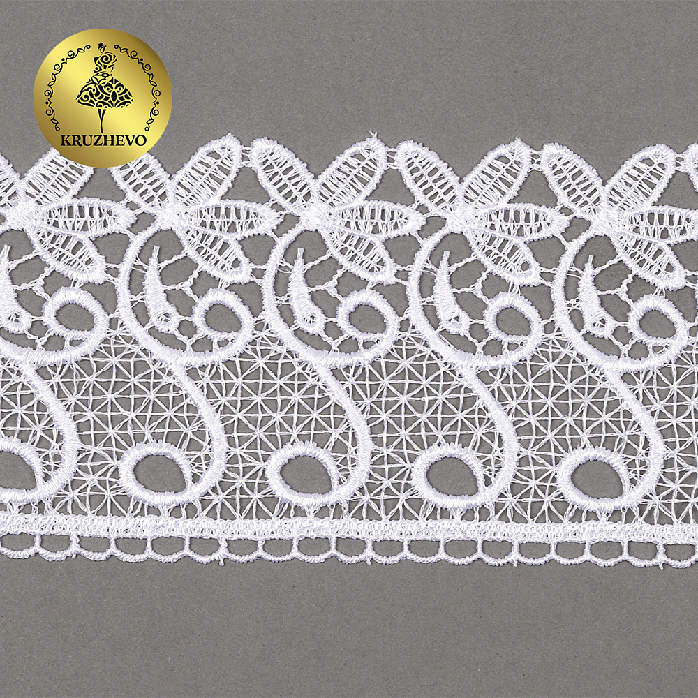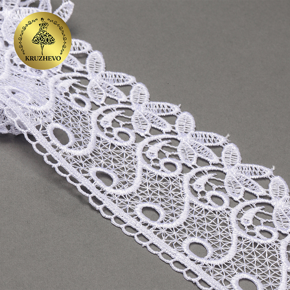 Кружево гипюр (плетёное) 70 мм, диз. 110, цв.01 белый, уп. 9 м, Kruzhevo
