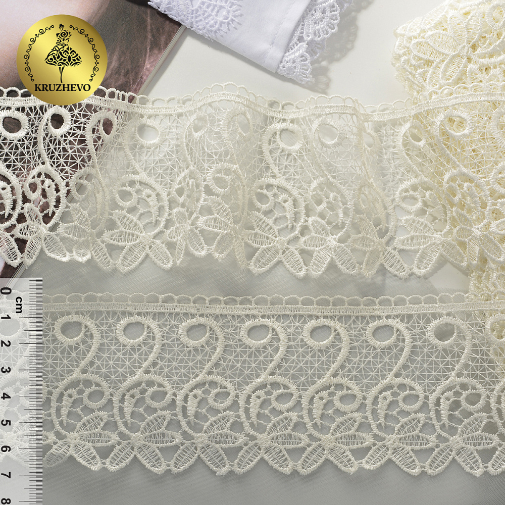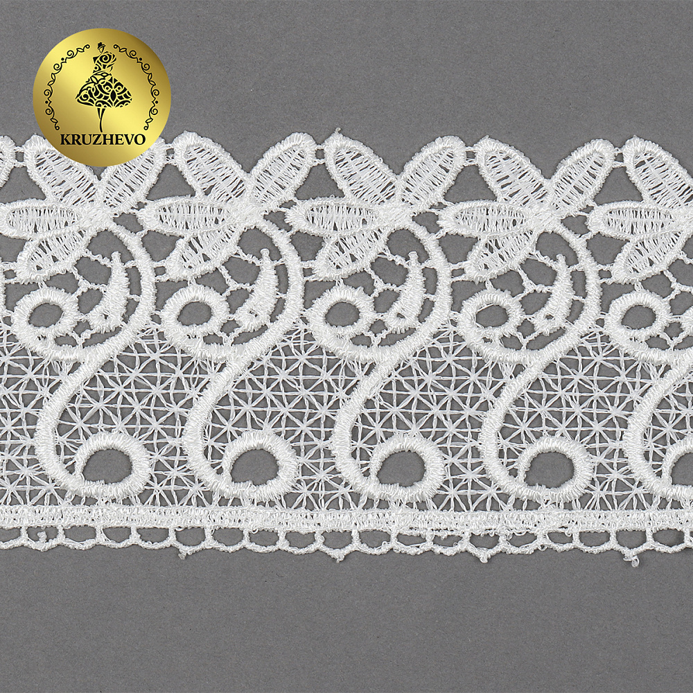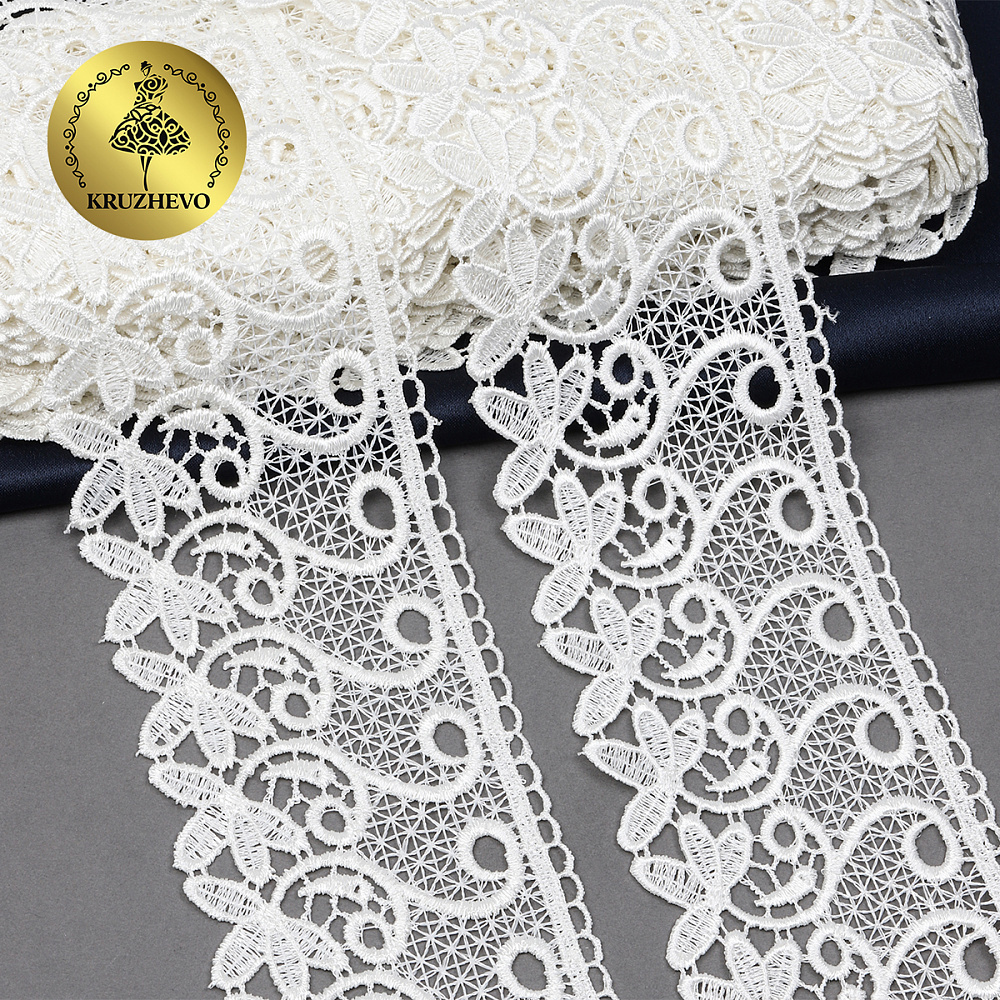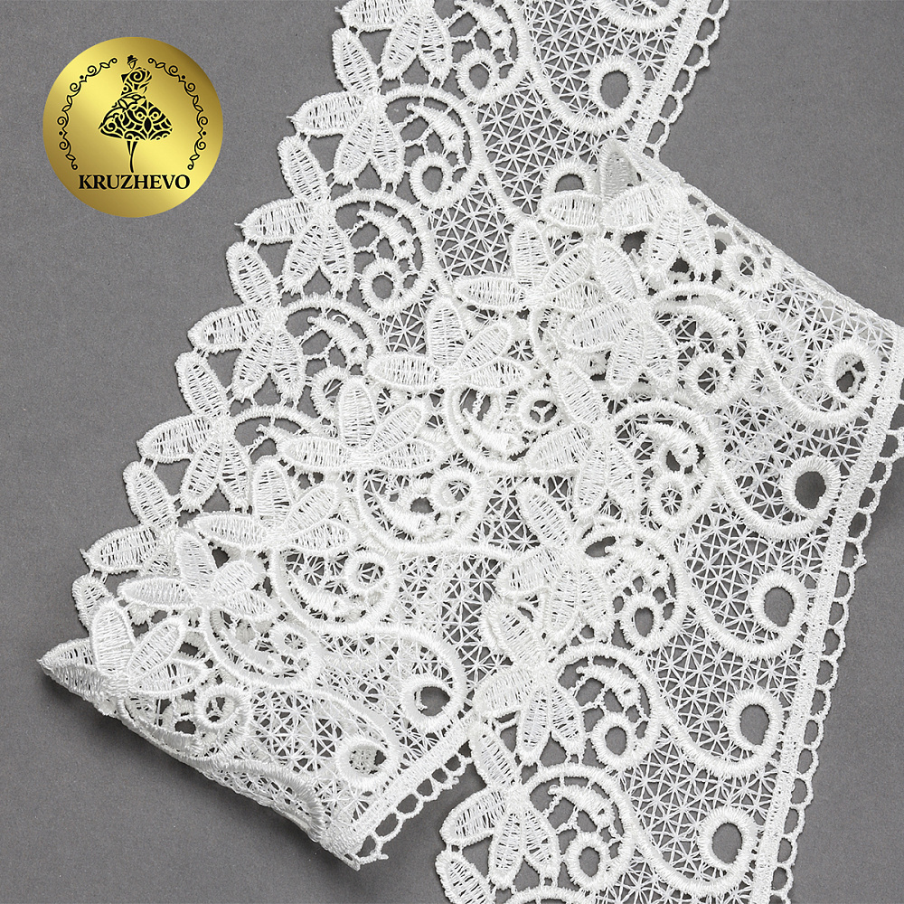Легкое, ажурное гипюровое кружево. Имеет широкую область применения: начиная от одежды и свадебных нарядов заканчивая декором интерьера.