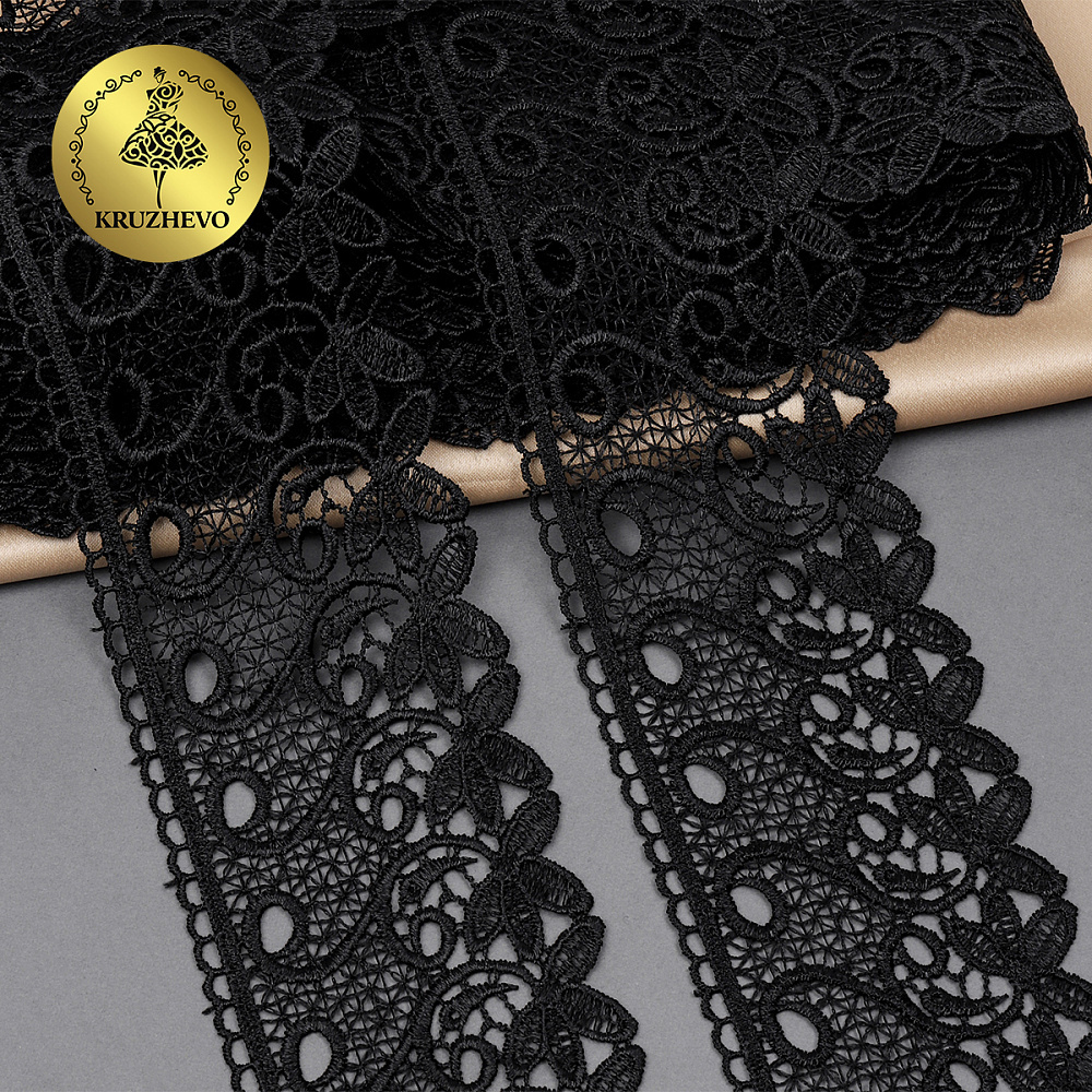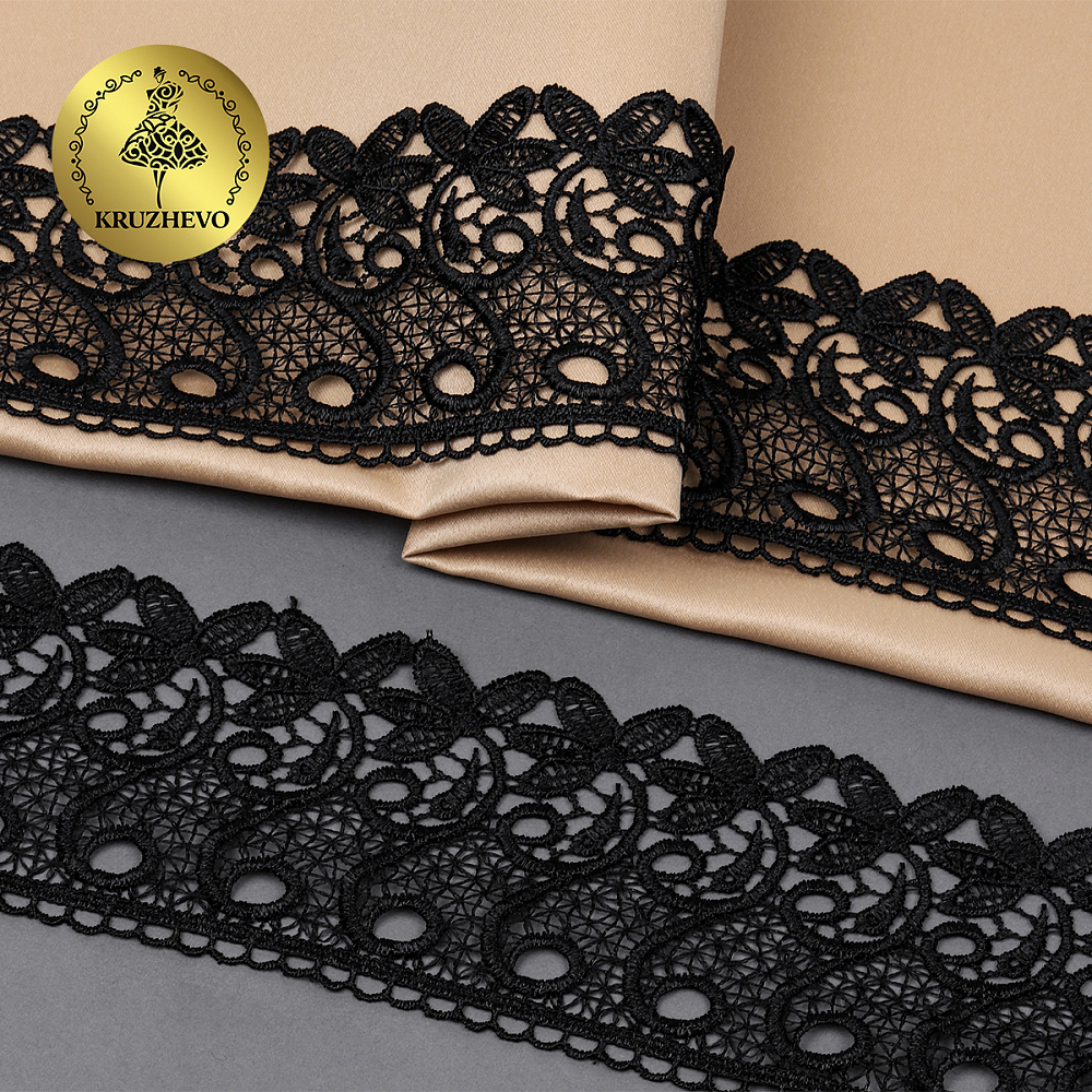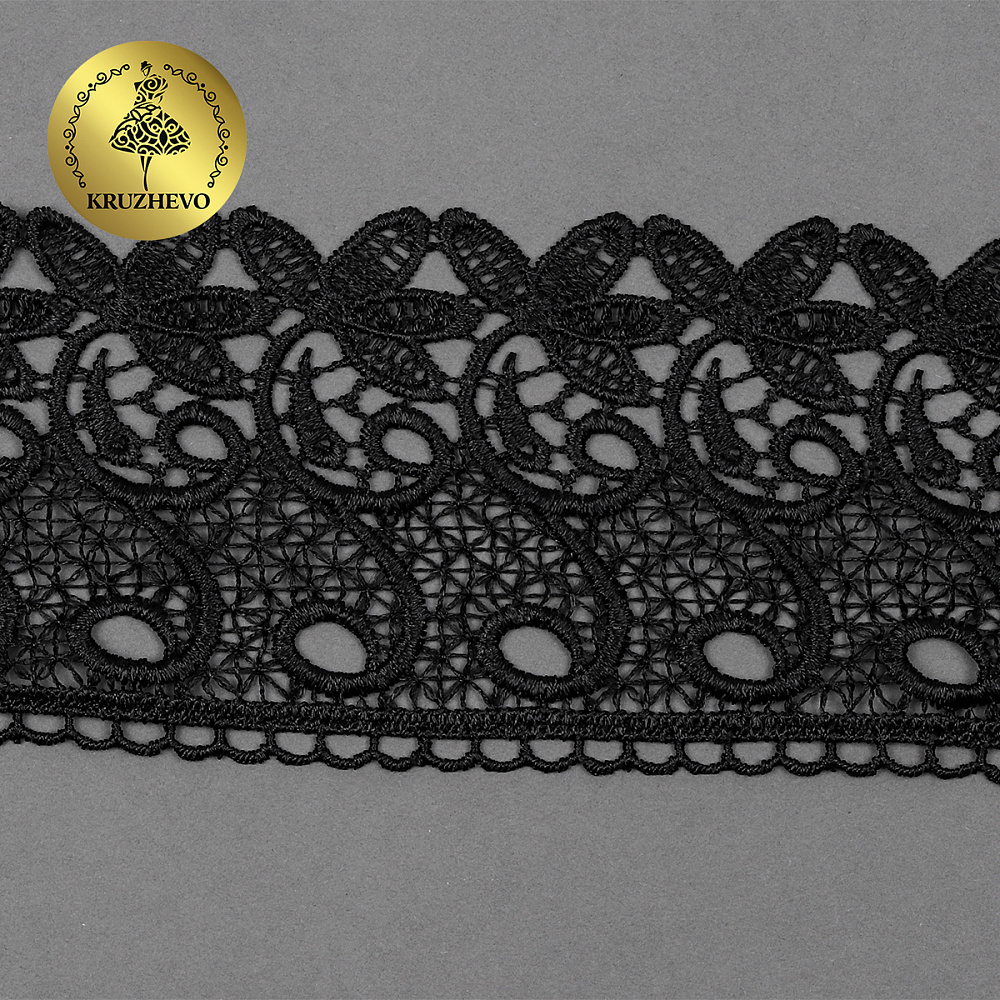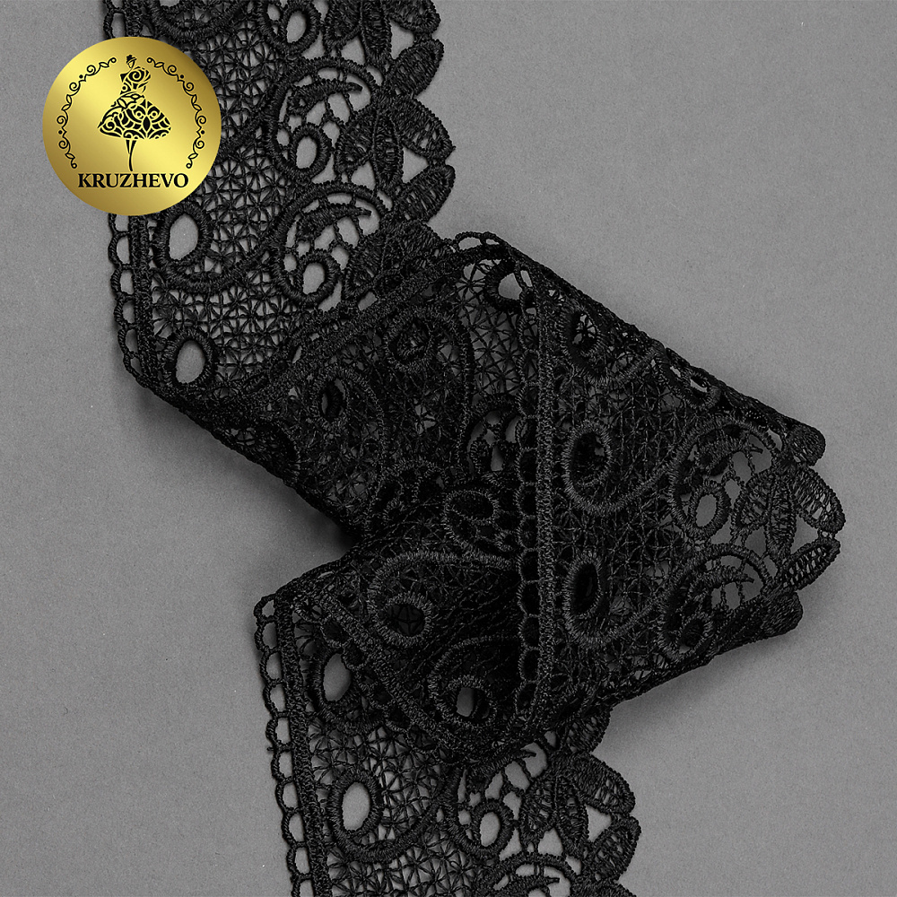 Кружево гипюр (плетёное) 70 мм, диз. 110, цв.05 черный, уп. 9 м, Kruzhevo