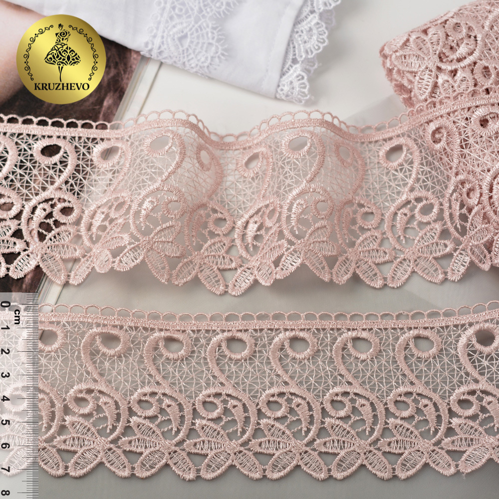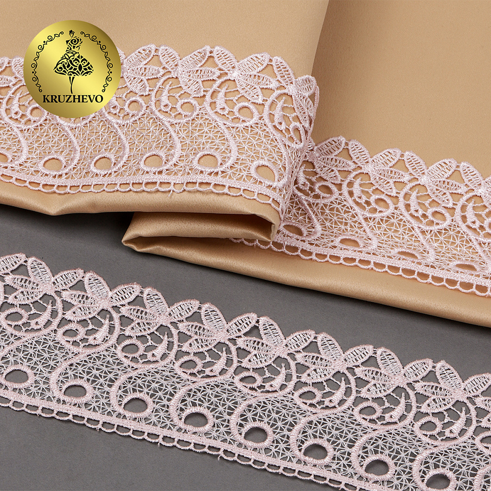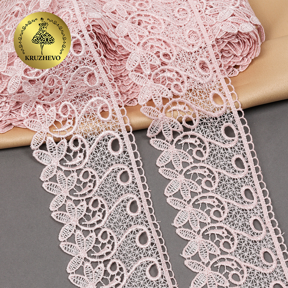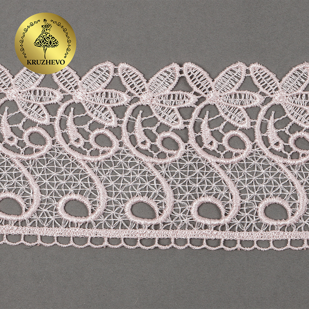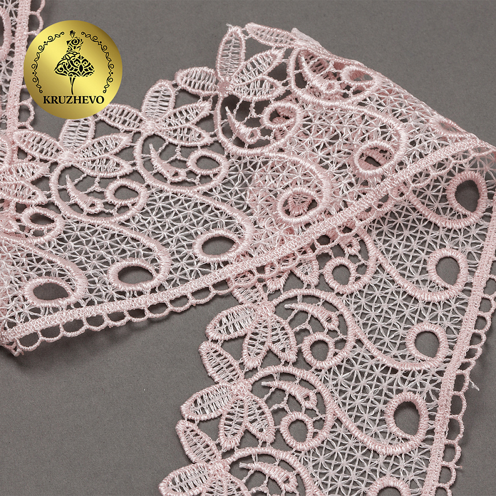 Кружево гипюр (плетёное) 70 мм, диз. 110, цв.17 розовый, уп. 9 м, Kruzhevo