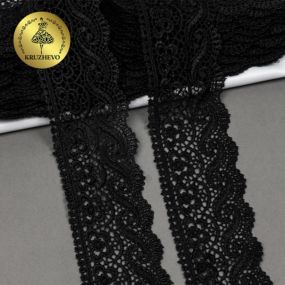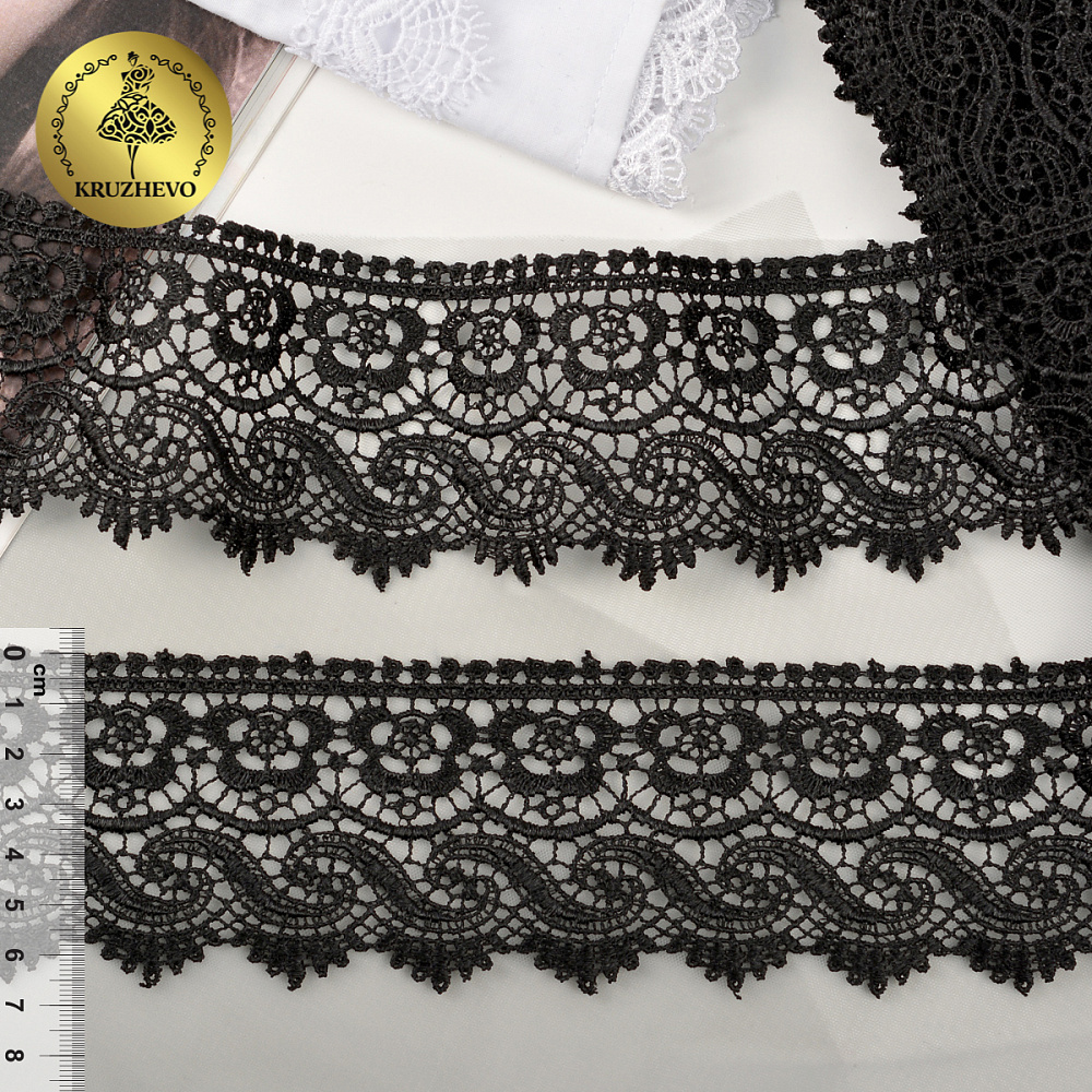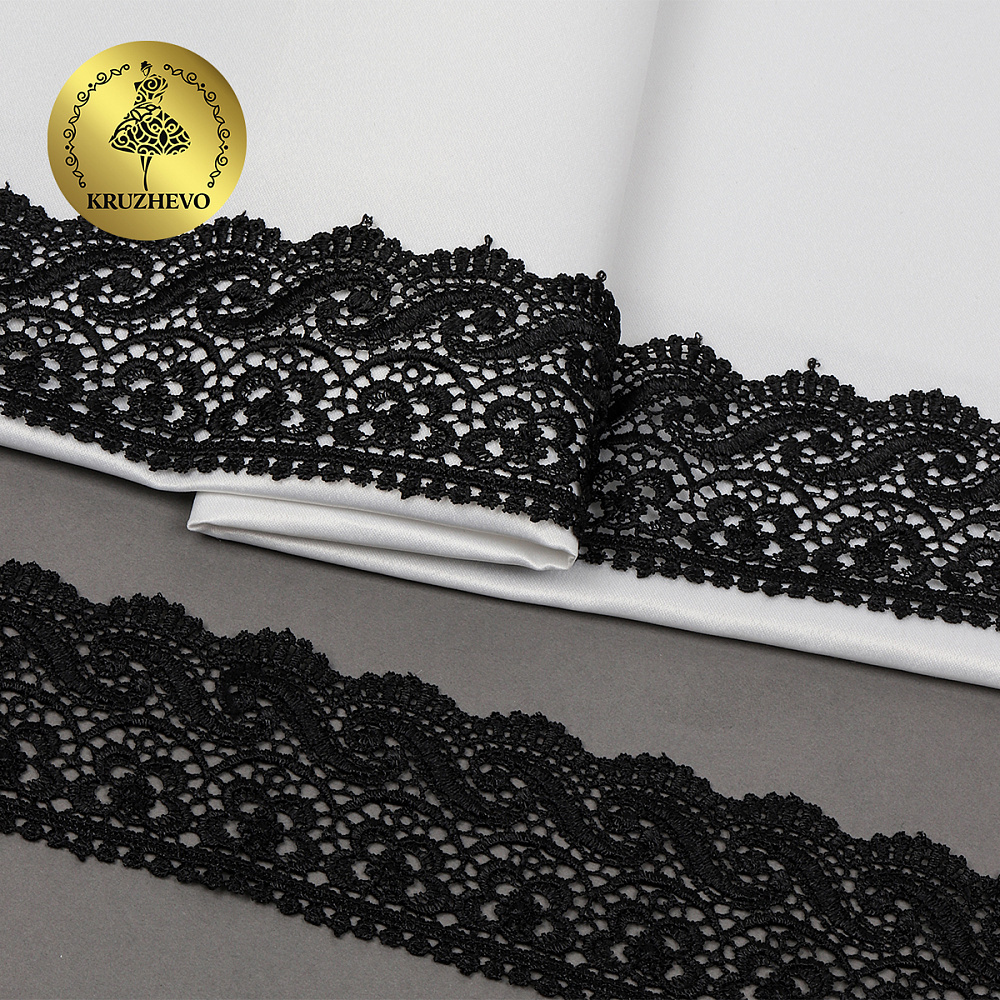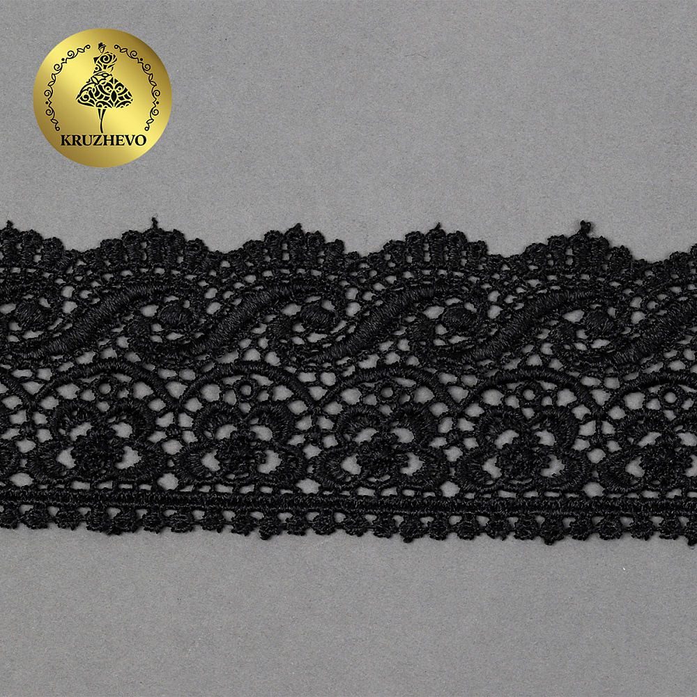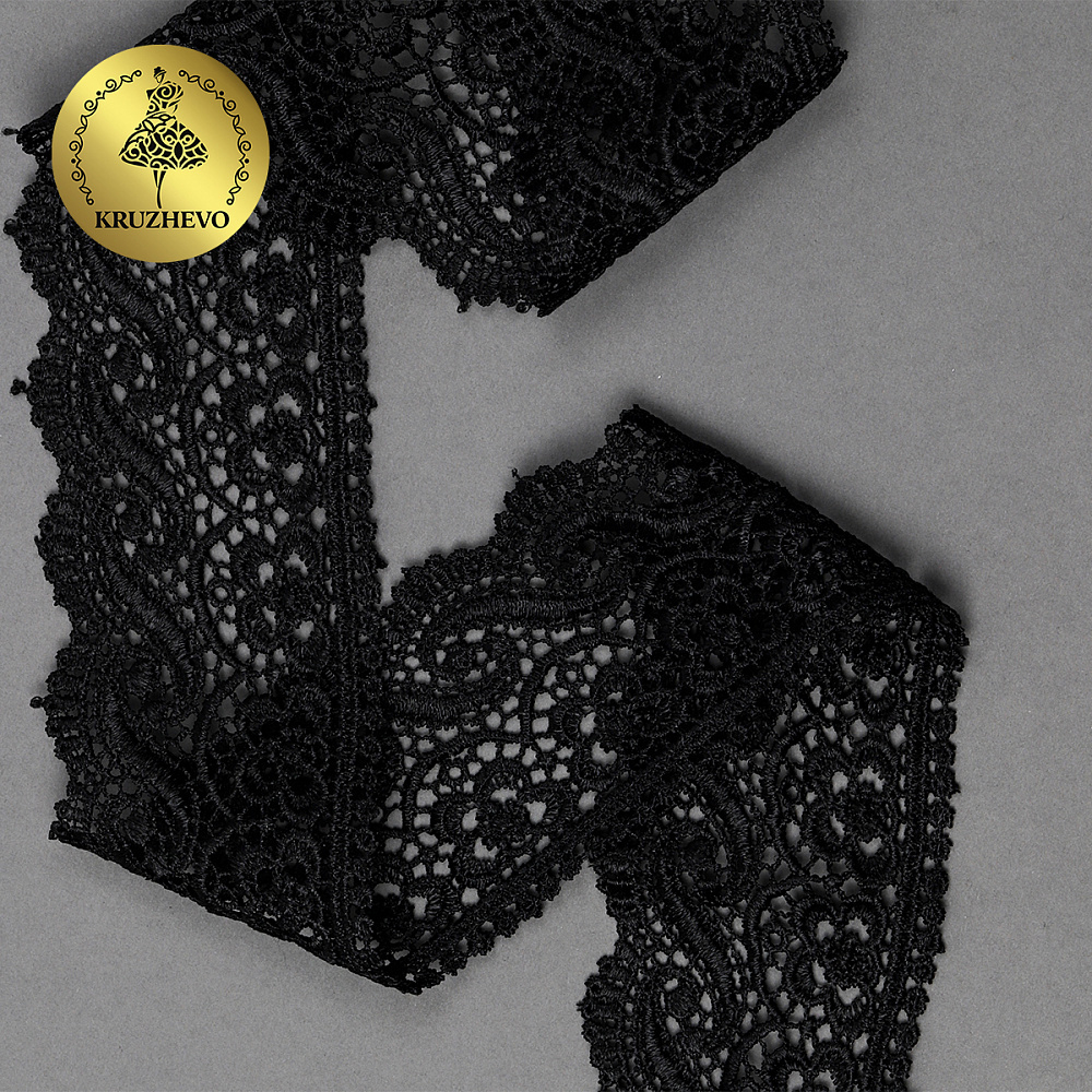 Кружево гипюр (плетёное) 65 мм, цв.05 черный, уп. 9 м, Kruzhevo
