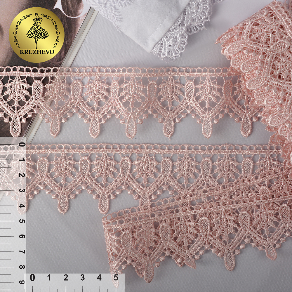 Кружево гипюр (плетёное) 45 мм, диз. 124, цв.05 розовая пудра, уп. 9 м, Kruzhevo