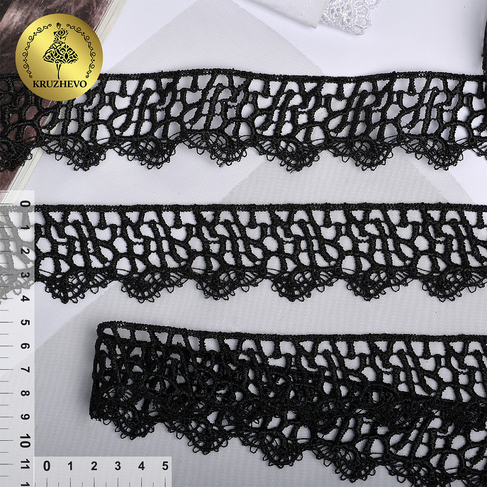 Кружево гипюр (плетёное) 40 мм, диз. 125, цв.04 черный, уп. 9 м, Kruzhevo