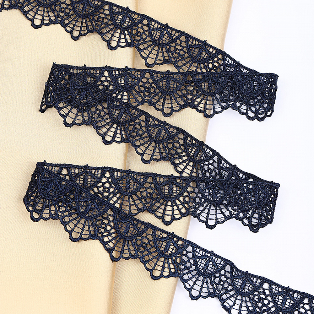 Кружево гипюр (плетёное) 30 мм, диз. 127, цв.3 т.синий, уп. 9 м, Kruzhevo
