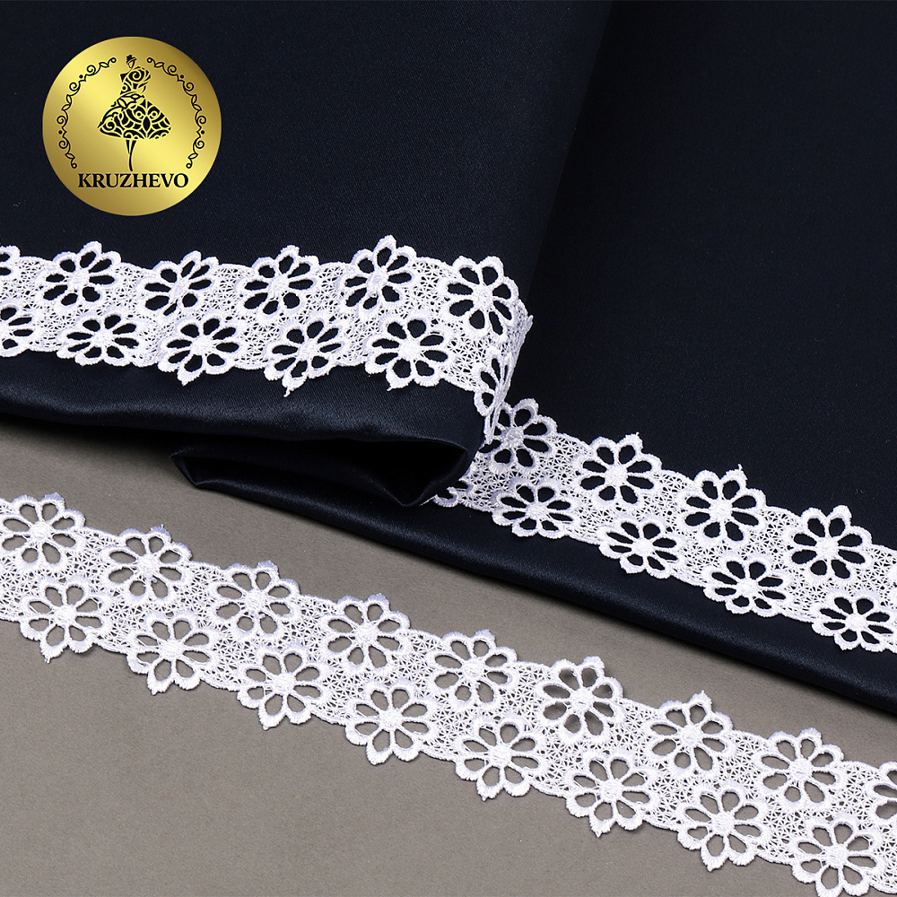 Легкое, ажурное гипюровое кружево. Имеет широкую область применения: начиная от одежды и свадебных нарядов заканчивая декором интерьера.