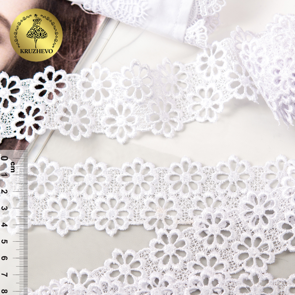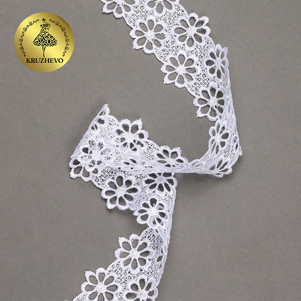 Кружево гипюр (плетёное) 44 мм, диз. 133, цв.4 белый, уп. 9 м, Kruzhevo