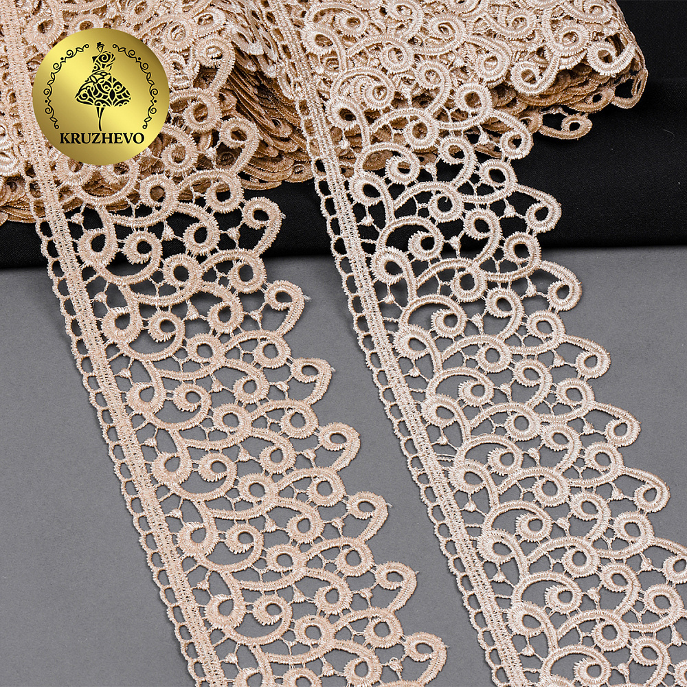 Кружево гипюр (плетёное) 80 мм, TR.8G8386, 14 капучино, 12м, Kruzhevo