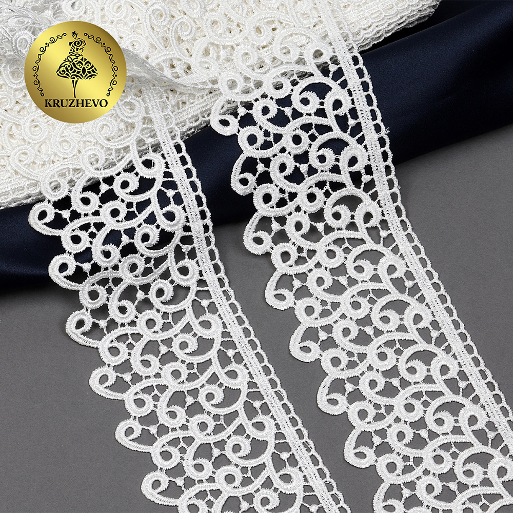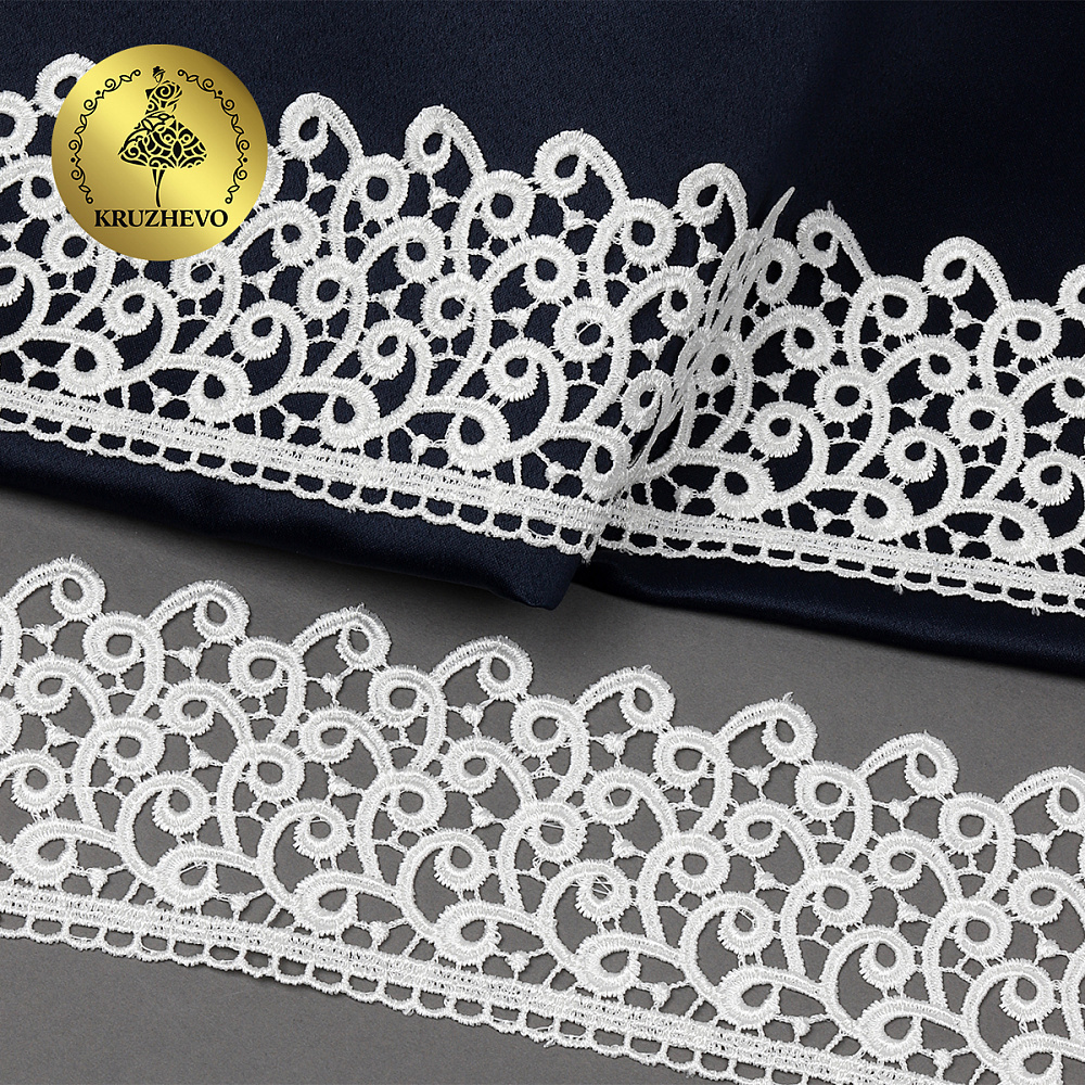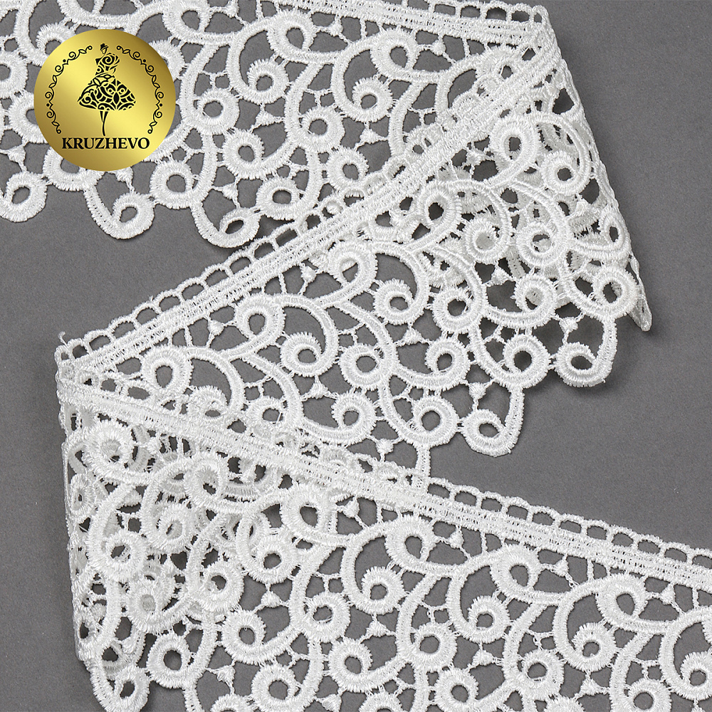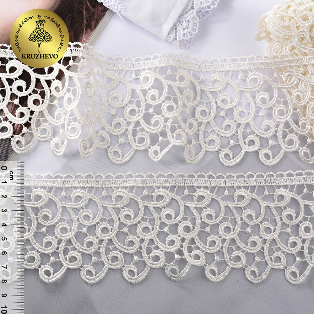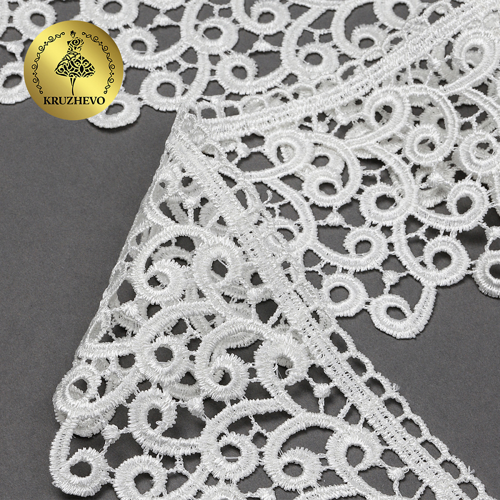 Легкое, ажурное гипюровое кружево от бренда Kruzhevo. Имеет широкую область применения: начиная от одежды и свадебных нарядов заканчивая декором интерьера.