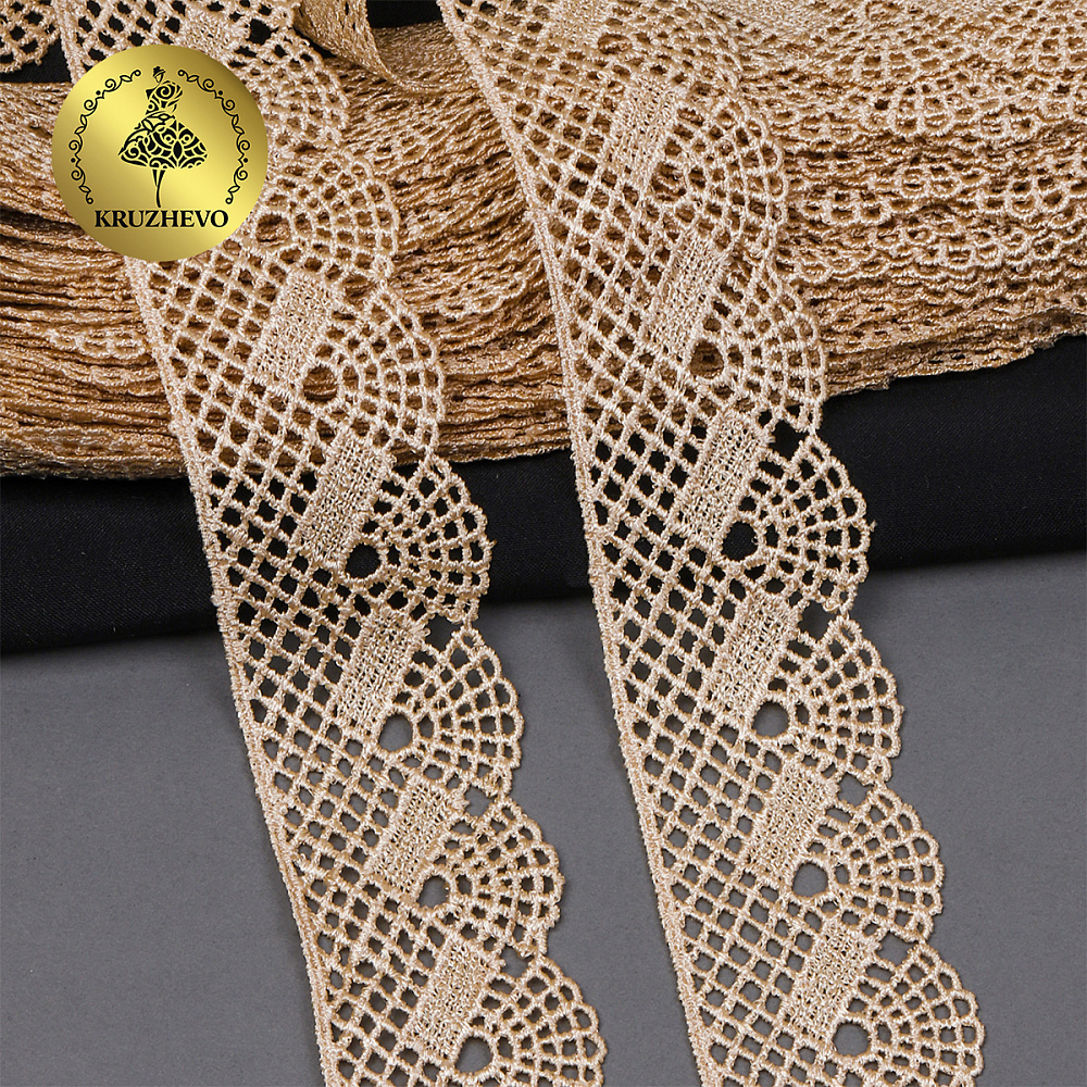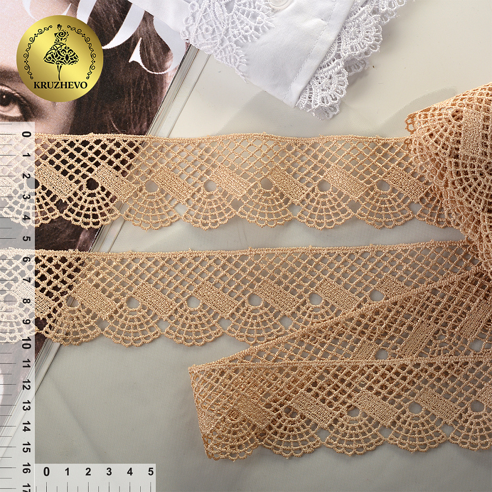 Кружево гипюр (плетёное) 45 мм, диз. 148, цв.14 капучино, уп. 9 м, Kruzhevo