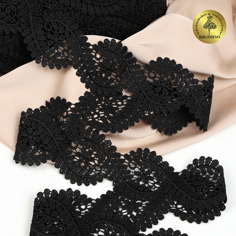 Кружево гипюр (плетёное) 50 мм, TBY.0735, черный, 13.71м, Kruzhevo