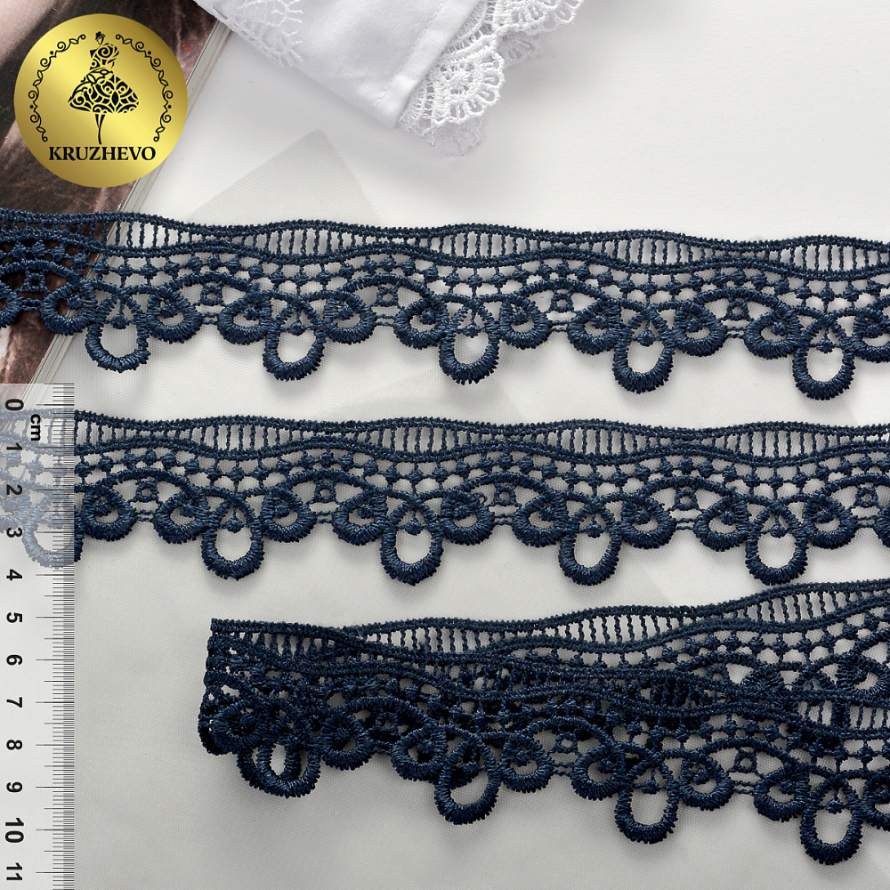 Кружево гипюр (плетёное) 40 мм, диз. 163, цв.3026 т.синий, уп. 13.71 м, Kruzhevo