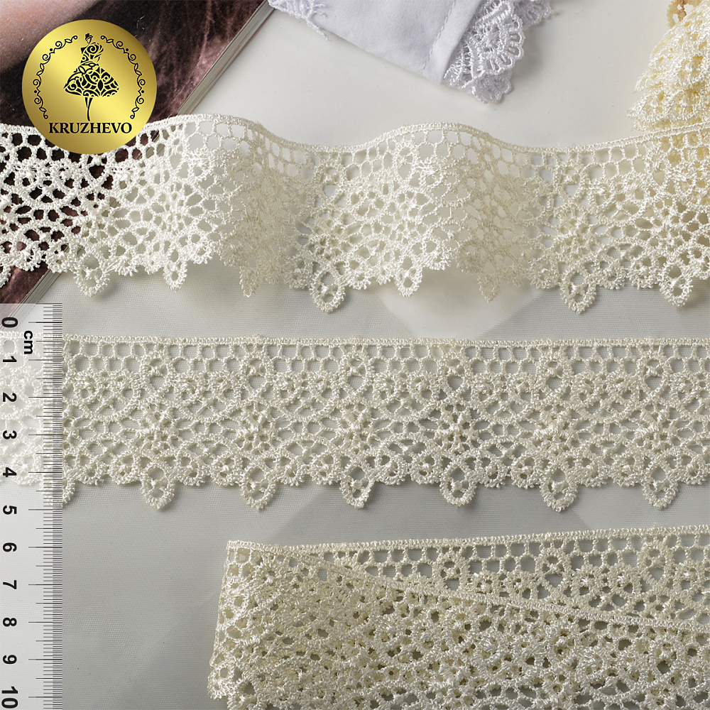 Кружево гипюр (плетёное) 45 мм, цв.02 молочный, уп. 9 м, M09961, Kruzhevo