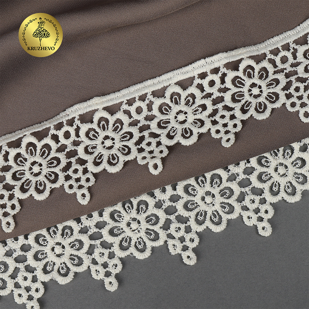 Легкое и изящное кружево гипюр c матовой нитью. Мягкое, но при этом очень прочное за счет полиэстеровых нитей. Хорошо держит форму. Имеет широкую область применения: начиная от одежды и свадебных нарядов заканчивая декором интерьера.